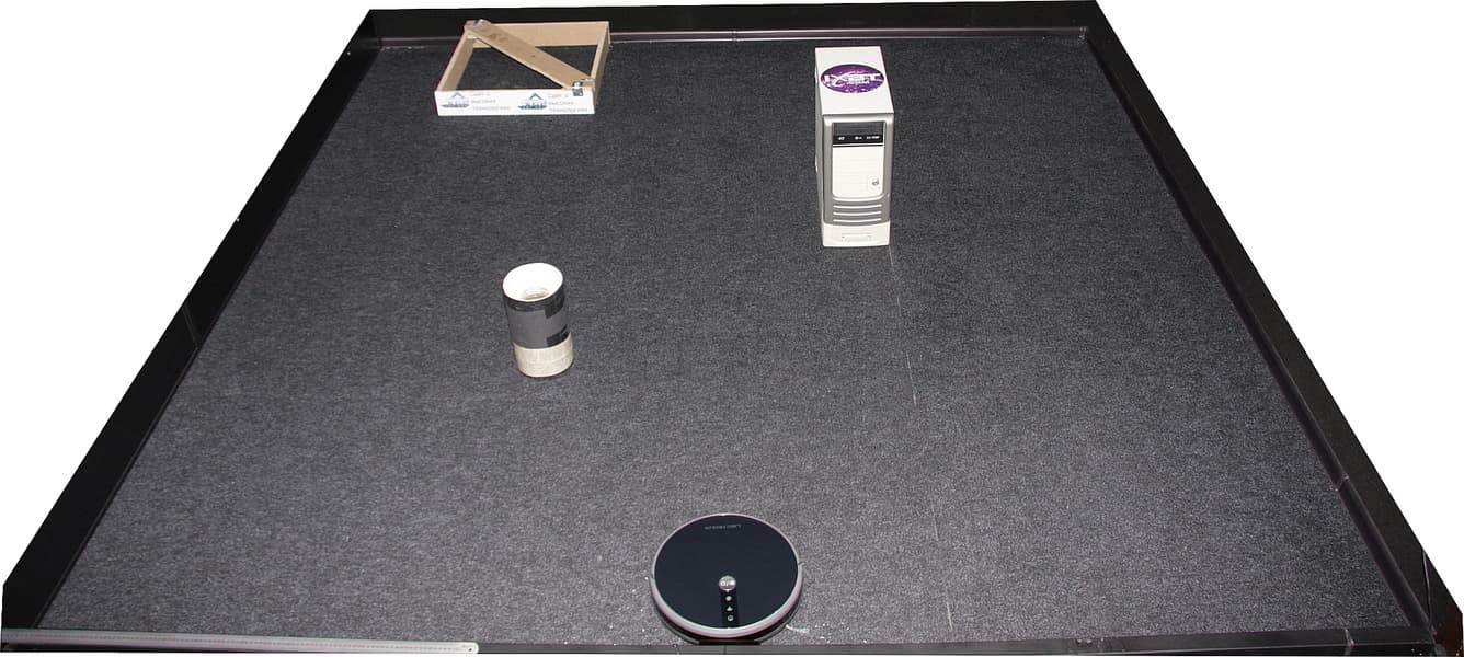 В случае нашего тестового участка в начале уборки робот, двигаясь змейкой, проходит доступную ему часть территории, и возвращается к тем местам, которые он еще не убрал, а затем обходит помещение по периметру. Карта тестового помещения после почти полного завершения одного из циклов уборки: