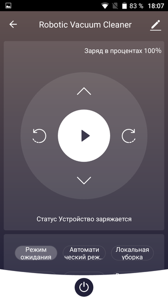 В ручном режиме уборки направление движения робота задается с помощью кнопок пульта дистанционного управления или виртуальных в приложении. Робот поворачивает на месте при нажатии на стрелки вправо-влево на пульте, движется вперед, пока нажата стрелка вверх, и назад — пока нажата на стрелка вниз. В любом случае во время движения робот убирает.