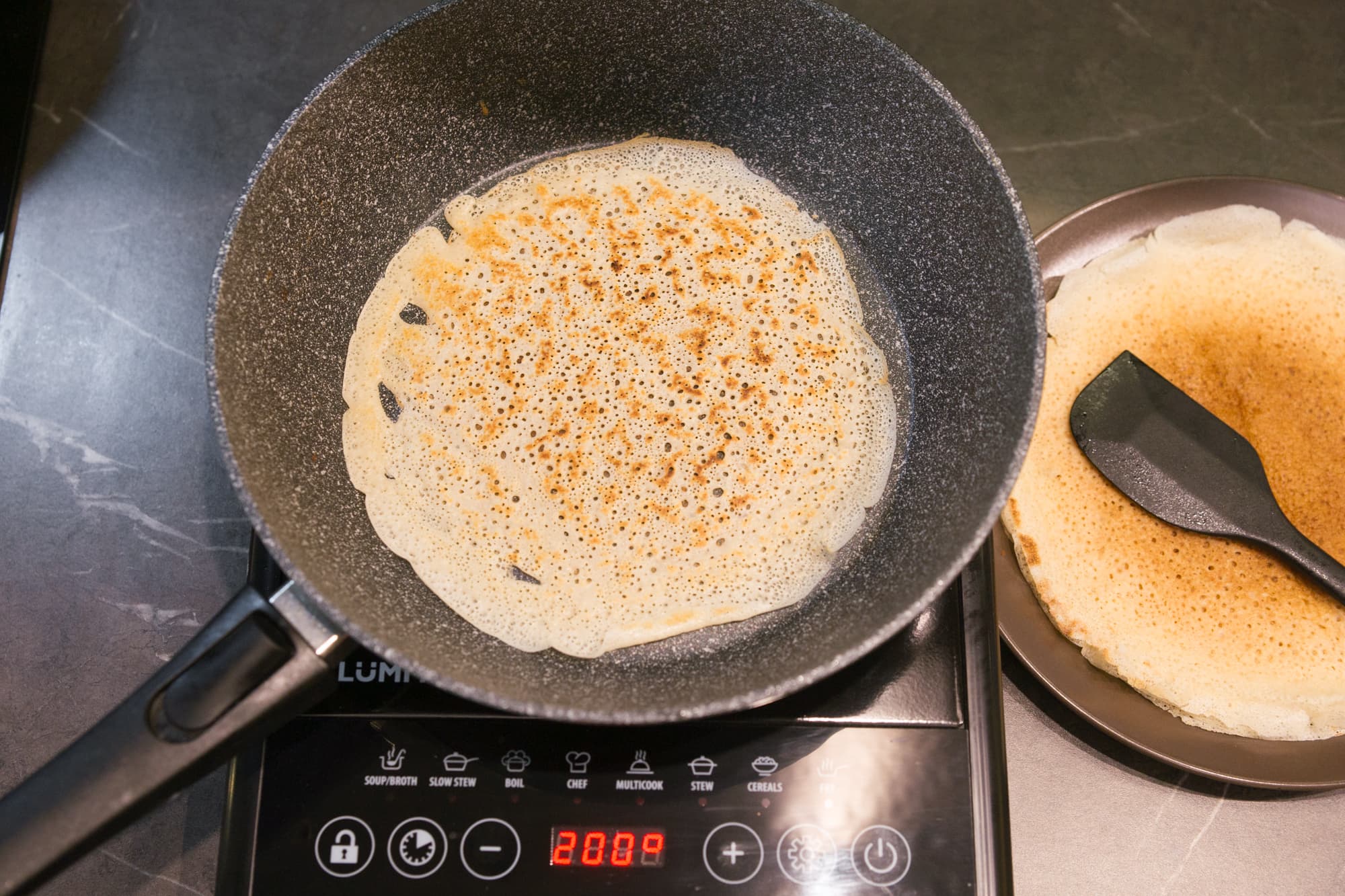 Идеальной степенью нагрева оказалась мощность 200 °C. Блины пеклись достаточно быстро.
