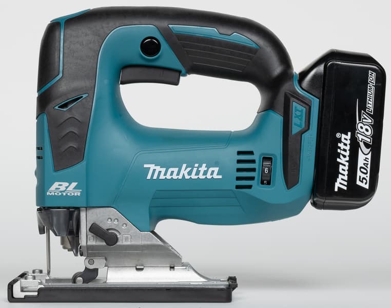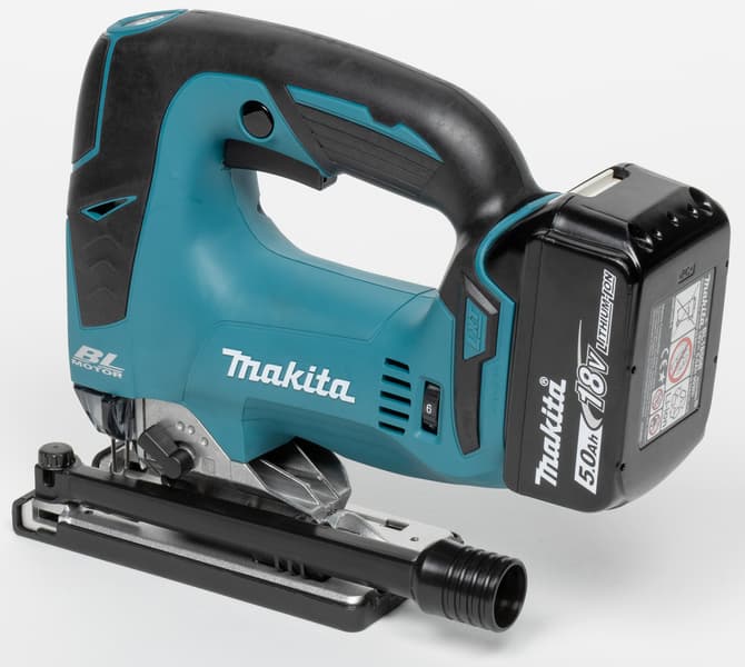 Аккумуляторный лобзик Makita DJV182Z не только освобождает от электрических проводов. Две редкие функции — плавный старт и мгновенная остановка — позволяют работать аккуратно и с комфортом. Встроенная двухламповая подсветка поможет тщательно контролировать рез, а насадка для пылесоса сохранит рабочее место в чистоте. Единственное, что может расстроить новичка — это дороговизна фирменных аккумуляторов. Однако мы уже говорили, что нынешние аккумуляторы принято покупать отдельно от инструмента — той емкости и в том количестве, которые требуются. Тем более, эти батареи совместимы с разными инструментами бренда. В частности, аккумулятор, который использовался с изученным лобзиком, можно использовать с огромным парком прочего инструмента системы Makita LXT: от дрелей и шуруповертов до триммеров и фонарей.