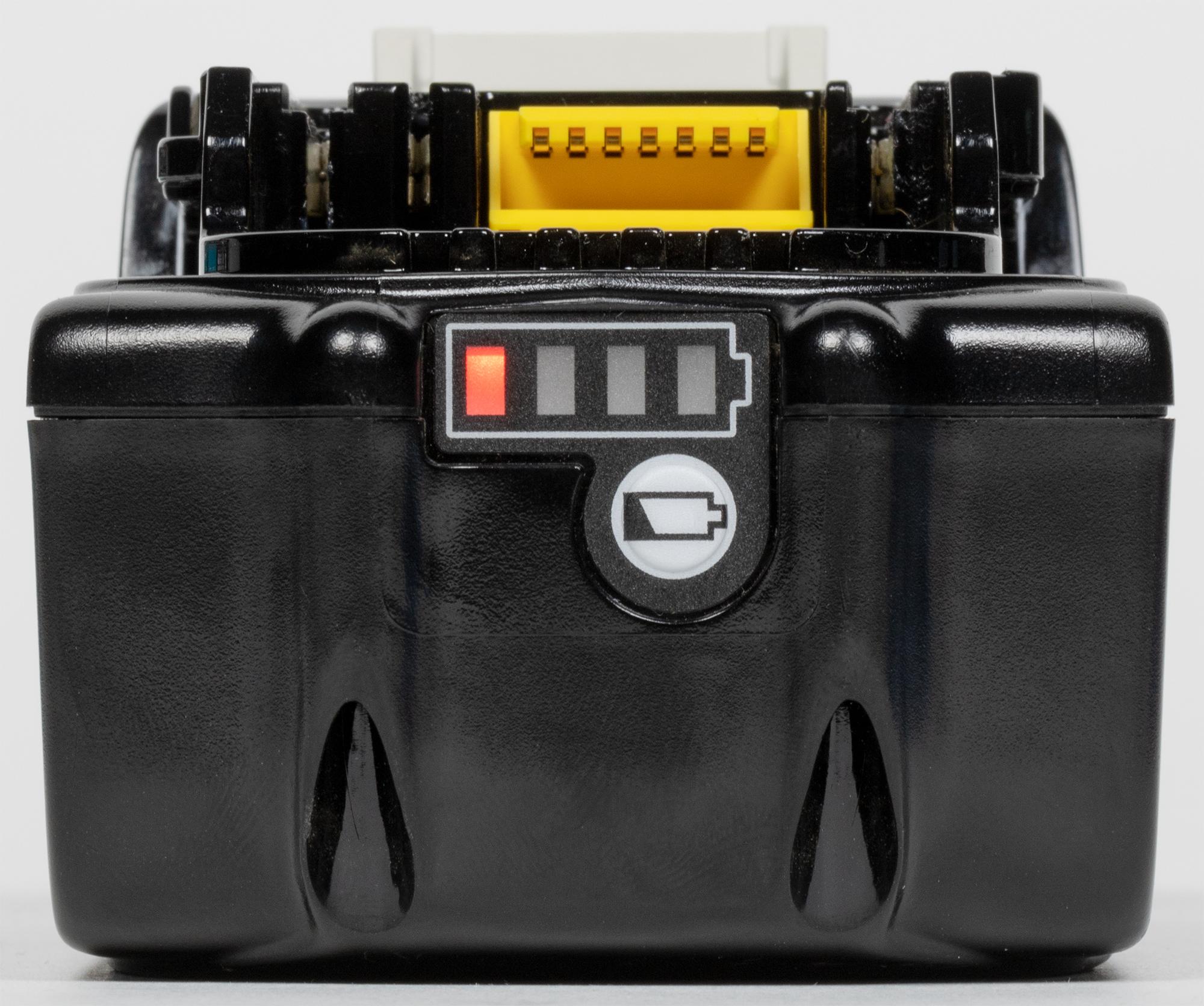 Имевшийся у нас 18-вольтовый аккумулятор снабжен встроенным индикатором оставшегося заряда.