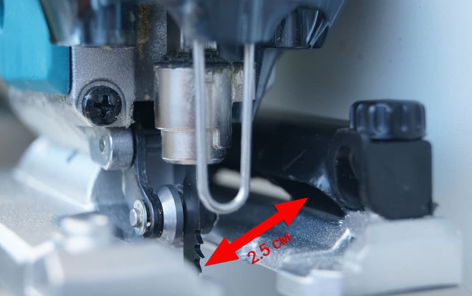 Расстояние между всасывающим отверстием и пилкой составляет чуть больше двух сантиметров, и, если используемый пылесос имеет достаточную мощность, то запыленность в помещении при работе можно значительно снизить.