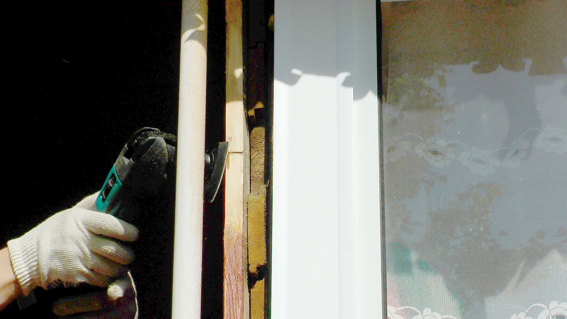 Нанятая не так давно команда горячих парней, промышляющих установкой окон, поменяла старые деревяшки на новый пластик. При установке работникам пришлось выпиливать целые куски старых досок. Иногда получалось не очень. К примеру, на память о работе бригады остался вот такой срез торцевой доски, выглядящий некрасиво. Самое же противное в ситуации оказалось то, что этот выпил, который хотелось бы чуток заровнять перед покраской, находится аккурат рядышком с газовой трубой. Газификация — оно, конечно, дело полезное. Вот только из-за трубы к этому срезу не подобраться никаким инструментом. Ни лобзиком, ни шлифмашинкой, ни тем более электрорубанком. Сбоку — пилка не дотягивается из-за трубы. Спереди — шлифовалка и рубанок не входят по ширине между трубой и белоснежной оконной окладкой. Нет, при сильном желании, конечно, можно и рискнуть. Вот только сильно чревато. В трубе же газ, не шутки.