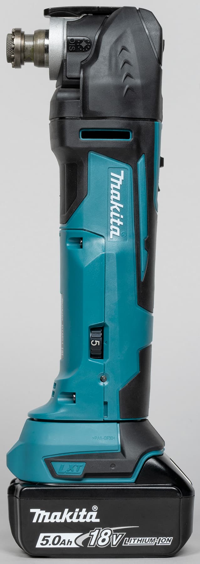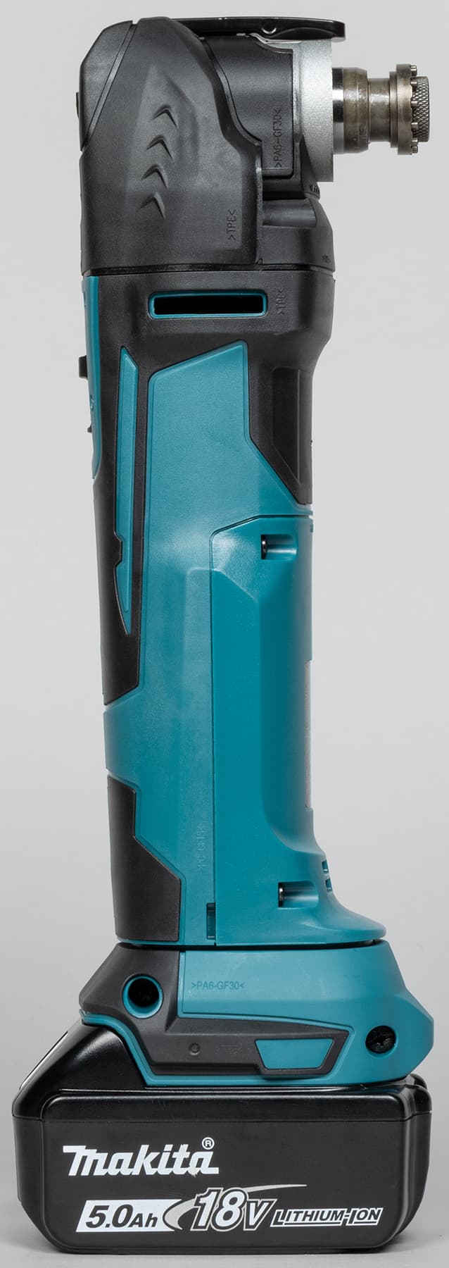 Что касается времени работы от аккумулятора — измерить это время практически нереально. Мультитул тем и отличается от, к примеру, шуруповерта, что не имеет какой-то четко заданной функции. Расход батареи во время пиления может сильно отличаться от расхода при шлифовании. Скажем кратко: при тестировании инструмента он выполнял все возможные задачи и проработал в общей сложности более двух часов. Однако емкость полностью заряженного аккумулятора упала лишь на одно деление из трех. Учитывая, что реноватор вряд ли будет использоваться для работы «на потоке», не стоит беспокоиться за его автономность. Понадобился реноватор — бери его с полки и смело используй. Заряда в батарее наверняка хватит для выполнения мелкой, но нужной работы.