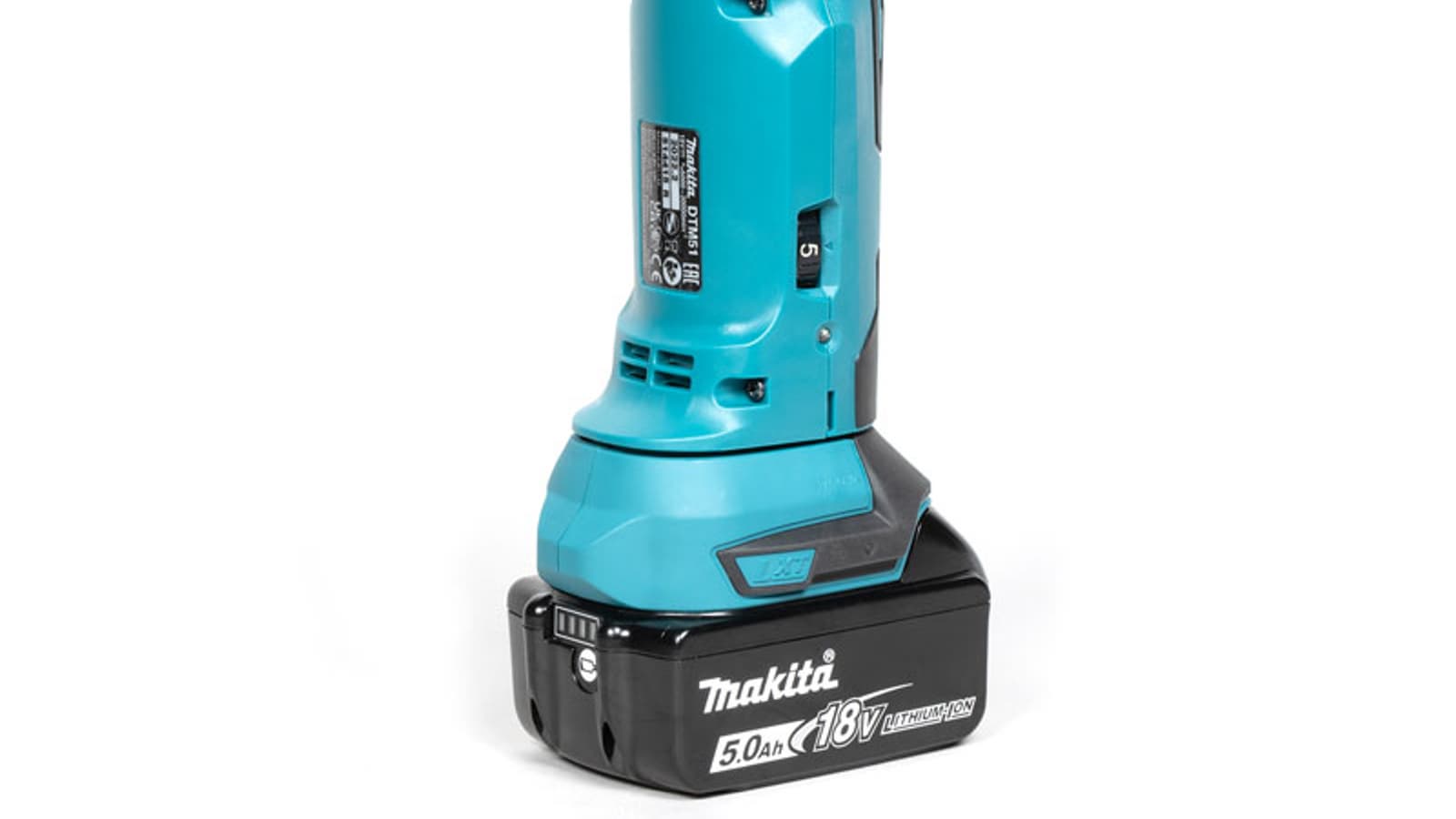 Рассматриваемый инструмент можно запитать любым 18-вольтовым аккумулятором серии Makita BL18xx. Такие аккумуляторы оснащены индикаторами оставшегося заряда.