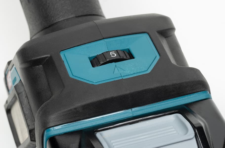 Вытянутый корпус, возможность перевешивания рукояти на разные стороны, стандартный ползунковый выключатель с фиксатором, который в нашем инструменте имеет такое же привычное верхнее расположение.