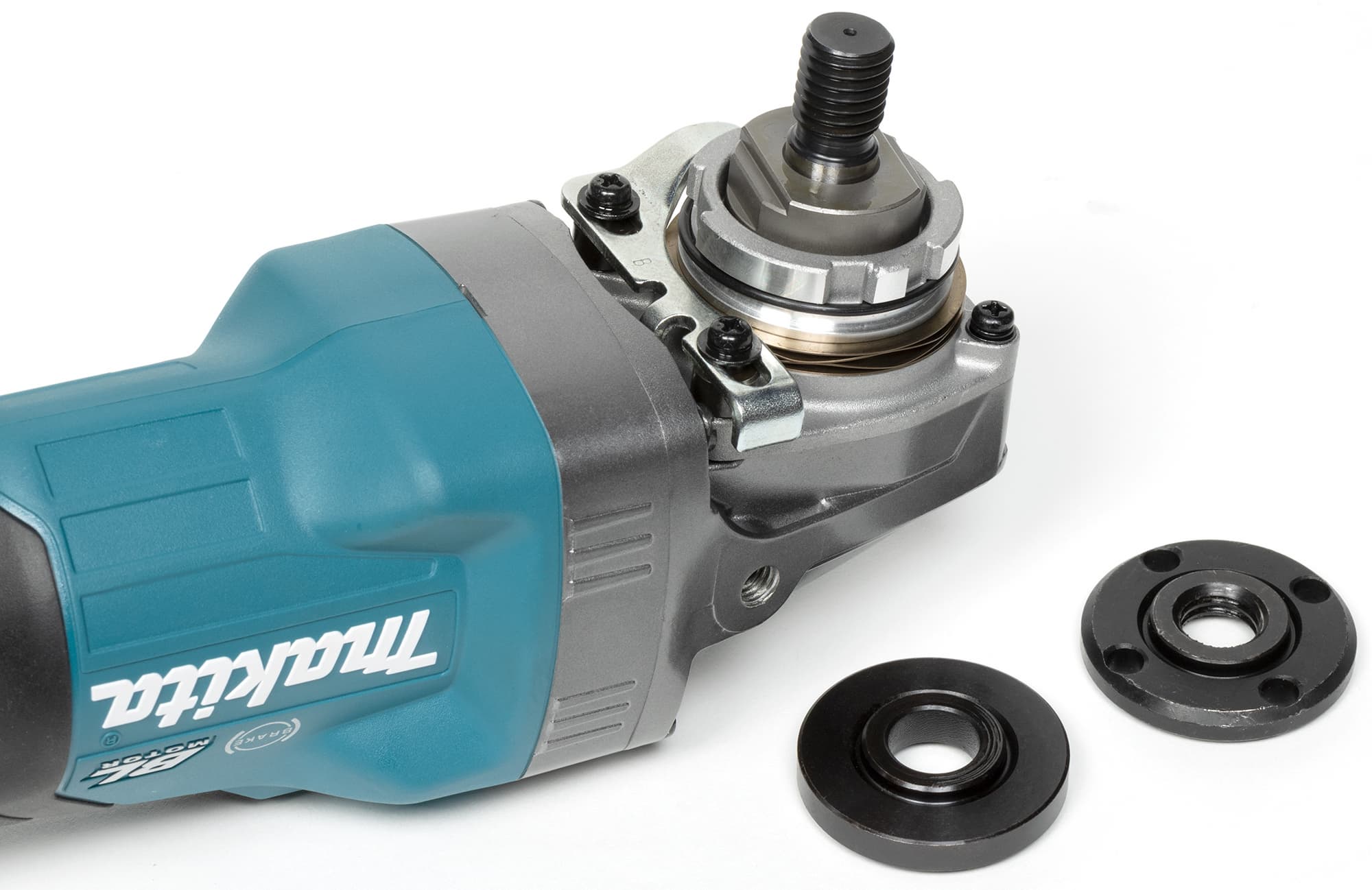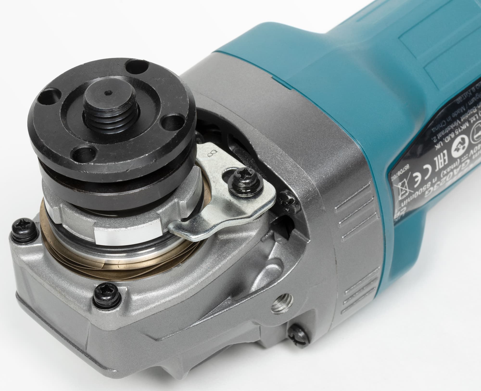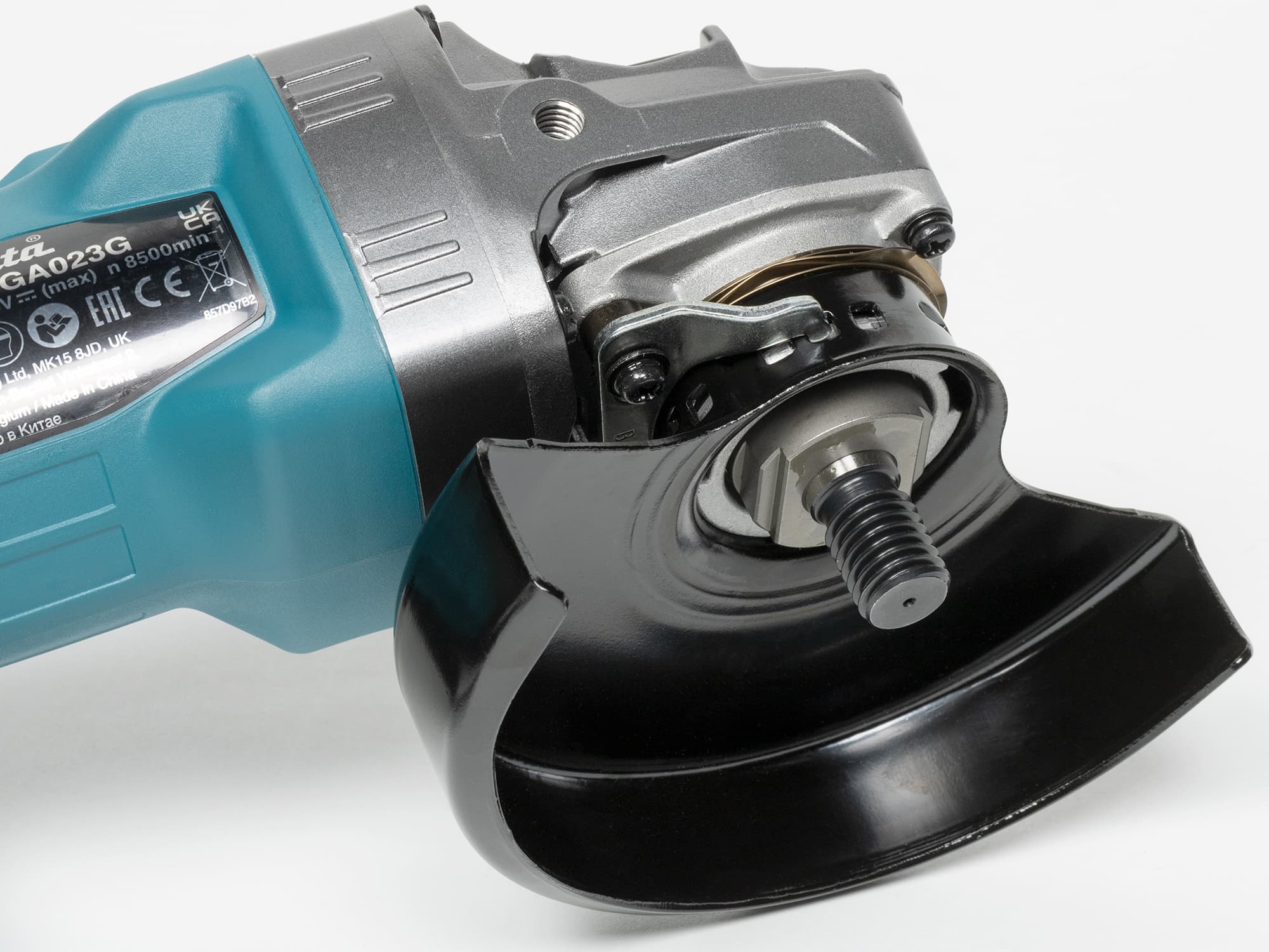 Makita GA023GZ — эффективный инструмент не только для разовых работ, но и для профессионального применения. Болгарка имеет все признаки продвинутой машины: плавный пуск двигателя с защитой от случайного повторного включения, бесключевой поворот и снятие защитного кожуха, съемный фильтр воздухозаборника, возможность беспроводного подключения к пылесосу.