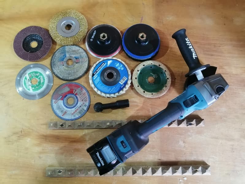 Для тестирования УШМ мы приготовили несколько насадок разного назначения, для работы по дереву, металлу и бетону.