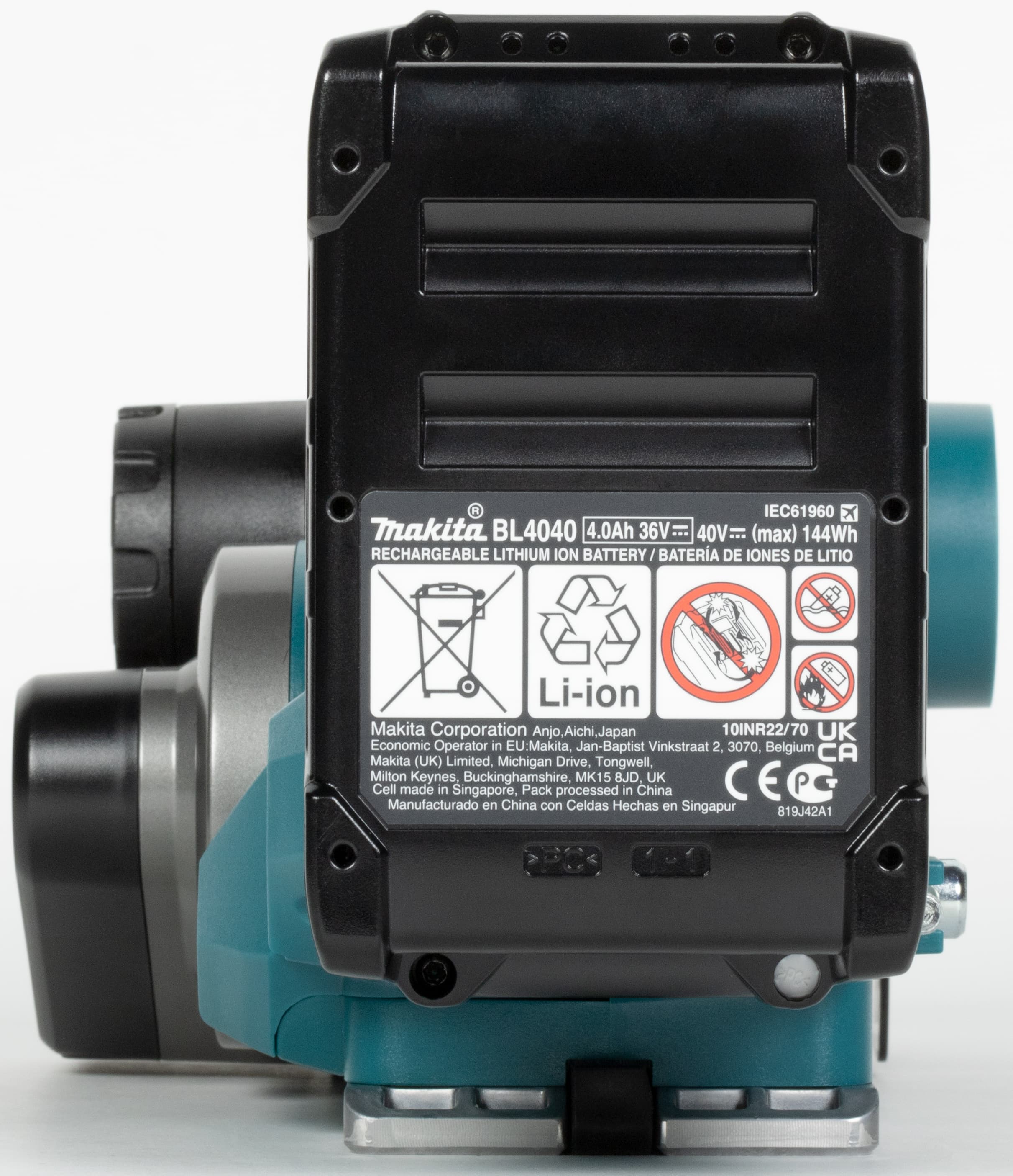 Как и любой аккумуляторный инструмент высокой мощности, рубанок не предназначен для масштабной деятельности. Даже самый емкий аккумулятор не даст достаточно энергии, чтобы выполнить сколько-нибудь серьезный объем работы. Назначение такого инструмента — быстрая обработка деревянных поверхностей в неподходящих условиях, без необходимости подготавливать рабочее место. В таких случаях самым важным оказывается фактор автономности, независимости от сетевого питания.