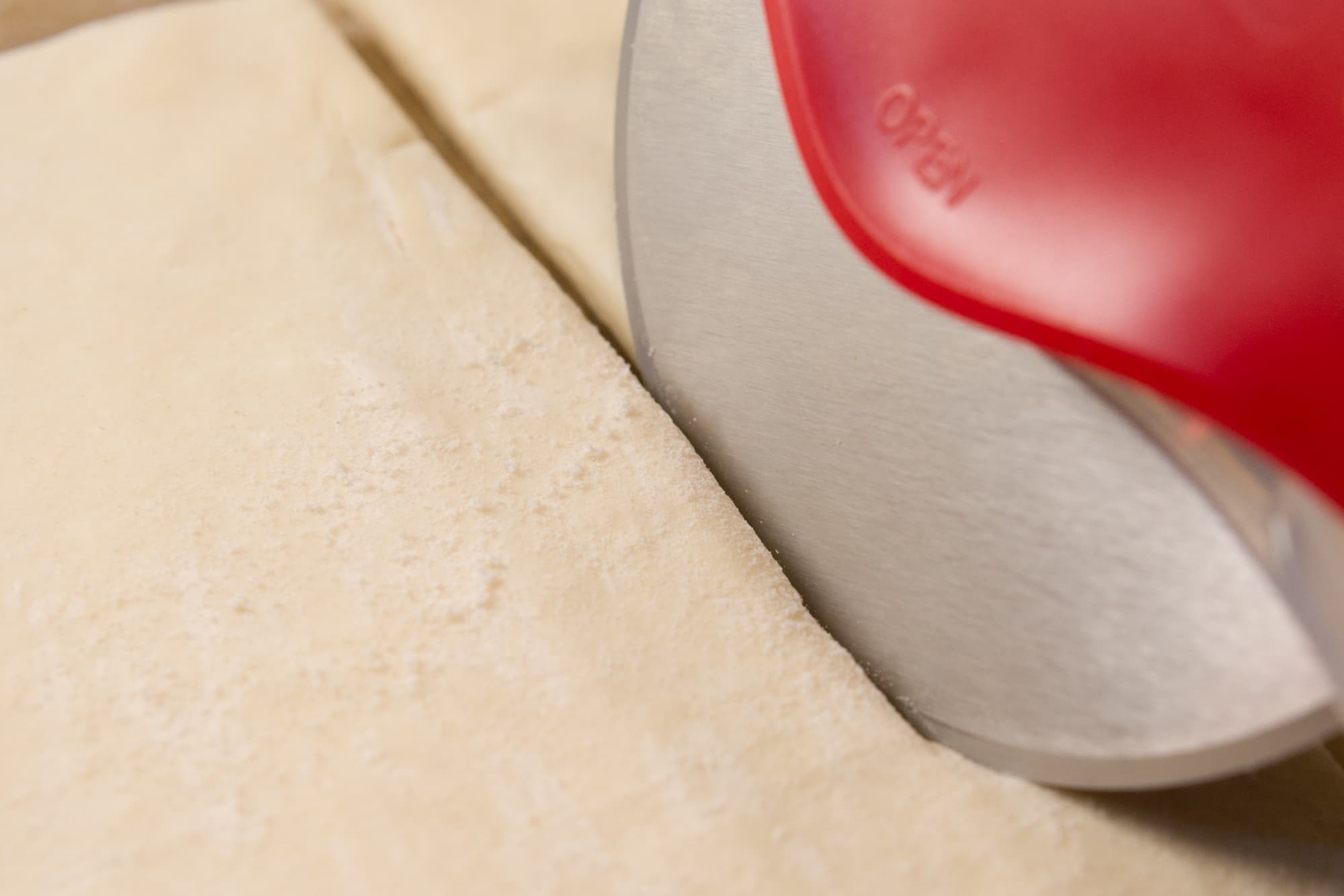 Для начала мы опробовали Makkua MK008 на сыром слоеном тесте. Такое тесто следует нарезать только острым тонким ножом, чтобы не смять и не «запечатать» слои, иначе при выпекании они не смогут раскрыться и готовое изделие не получится воздушным.