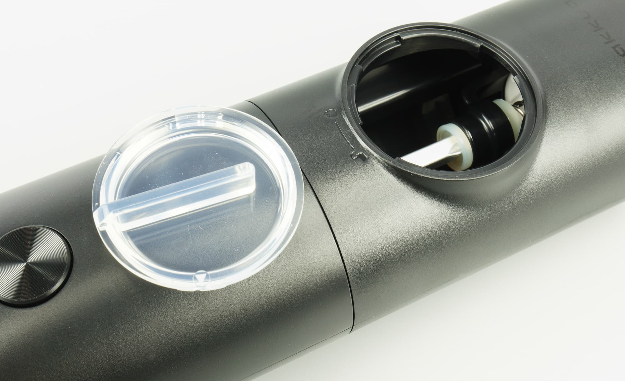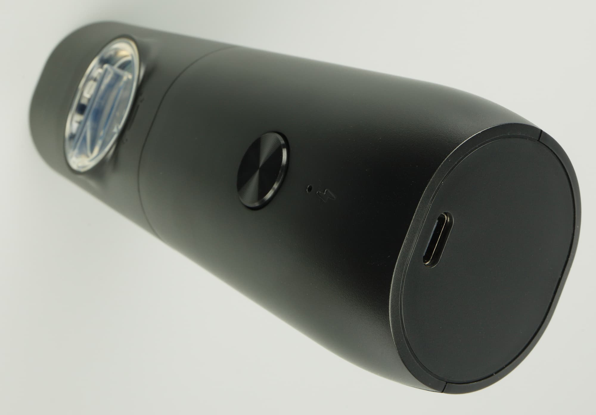 Устройство удобно ложится в руку и не выскальзывает. Механическая кнопка включения с ребристой поверхностью расположена на фронтальной части и приходится ровно под большой или указательный пальцы.