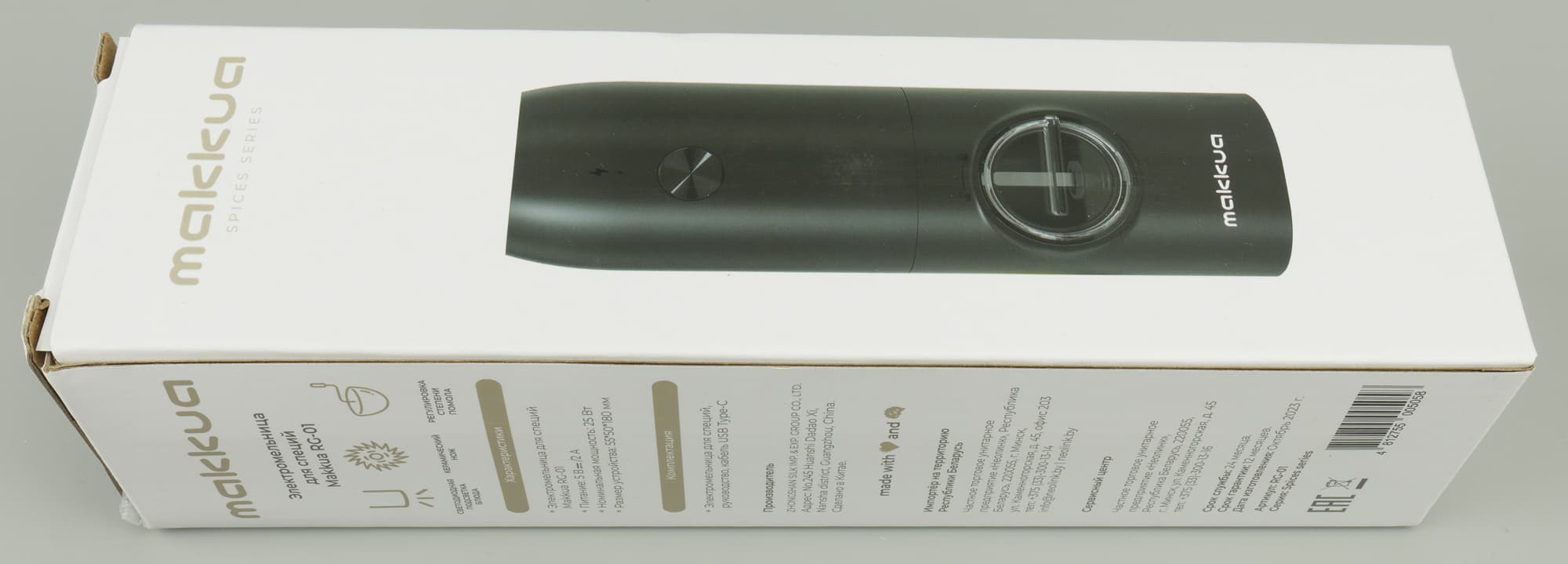 Упаковка электромельницы выполнена из прочного картона с качественной матовой ламинацией и оформлена в фирменном стиле бренда.