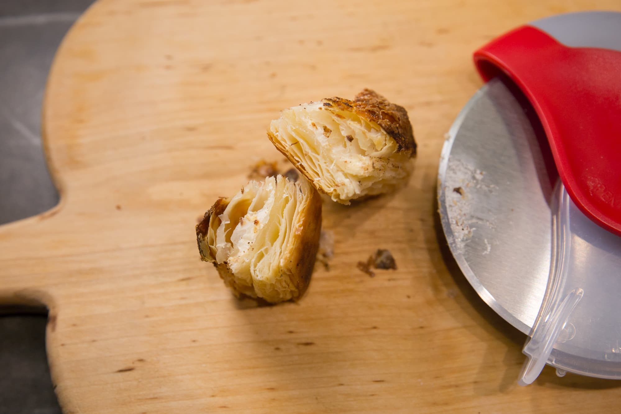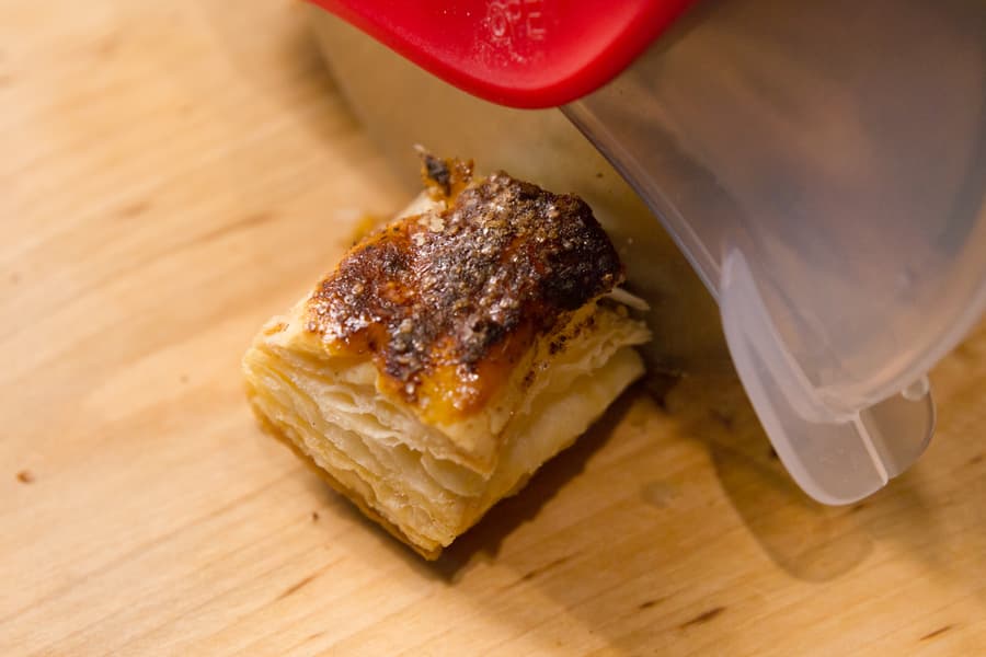 Готовая хрустящая слойка, только что из духовки, с помощью Makkua MK008 разрезалась столь же аккуратно.