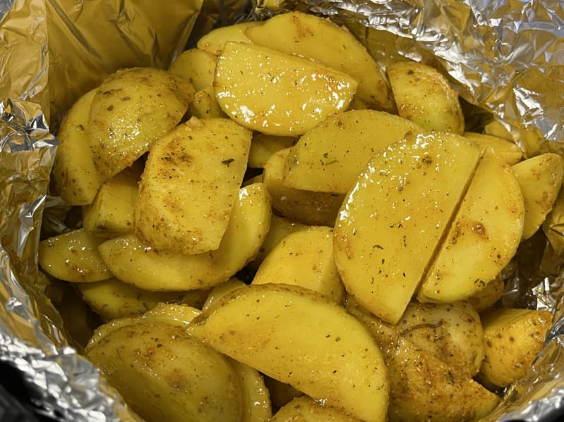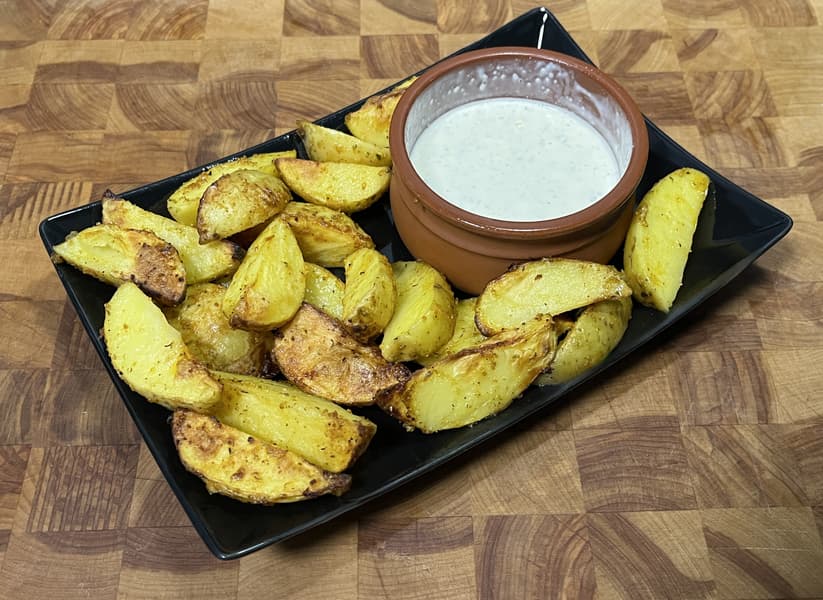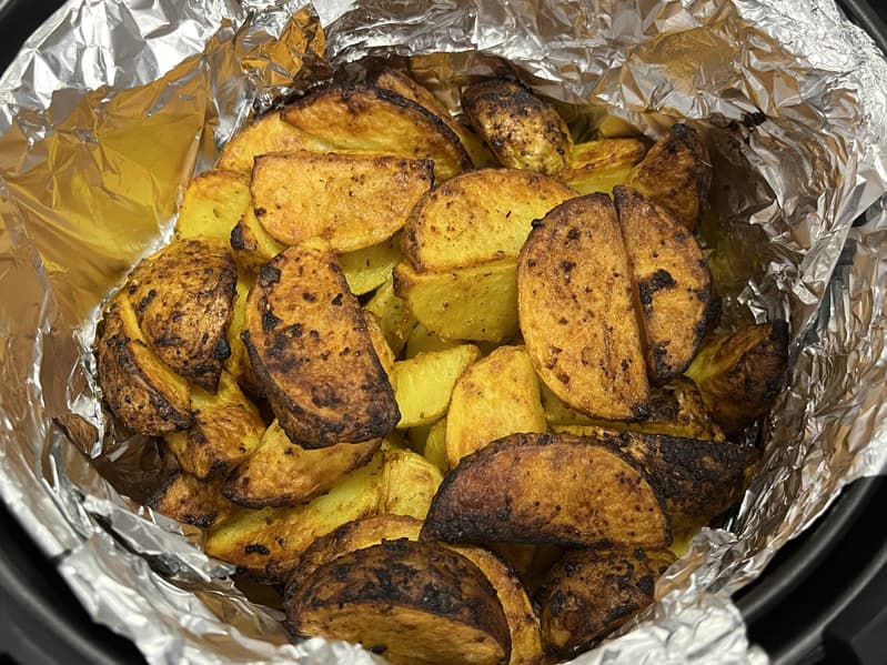 Спустя оставшееся время мы вернулись к аэрогрилю и обнаружили внутри горячую, ароматную и полностью прожаренную картошку по-деревенски.