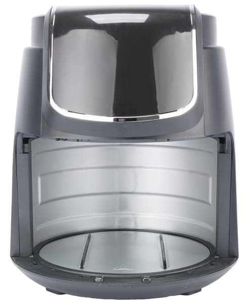 Отсутствие у аэрогриля прозрачного окошка не позволяет визуально контролировать процесс приготовления, не прерывая работы. Приходится доставать поддон за ручку, тем самым временно выключая прибор. Однако при установке поддона обратно программа продолжается с того же самого места, на котором прервалась. Кто бы что ни говорил про то, что окошко — это лишняя деталь, которую требуется очищать, всё же его отсутствие пару раз доставило нам неудобство, так как мы следовали инструкции по времени и температуре приготовления, но то ли одно, то ли другое оказалось чрезмерным и мы едва не упустили момент подгорания продуктов, лежащих ближе к тэну.