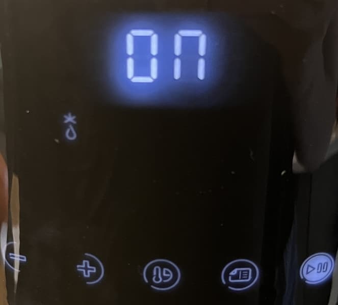 После включения прибора в розетку мы слышим звуковой сигнал, а на дисплее тем временем загораются множество символов, часть из которых через несколько секунд гаснут. Остается только подсветка кнопки включения.