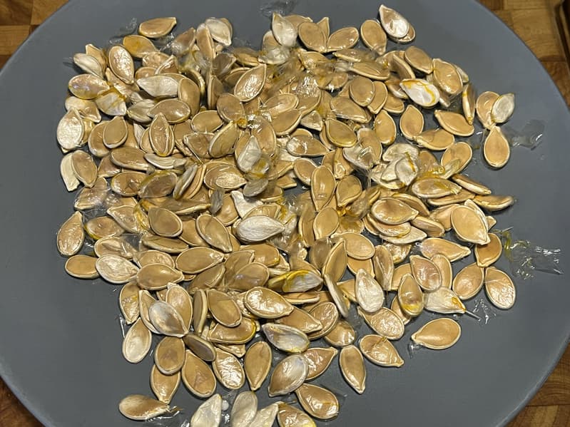 После чего решили эти семена не выбрасывать, а подсушить, используя для этого тот же аэрогриль, раз уж он имеет возможность работать на невысоких температурах.