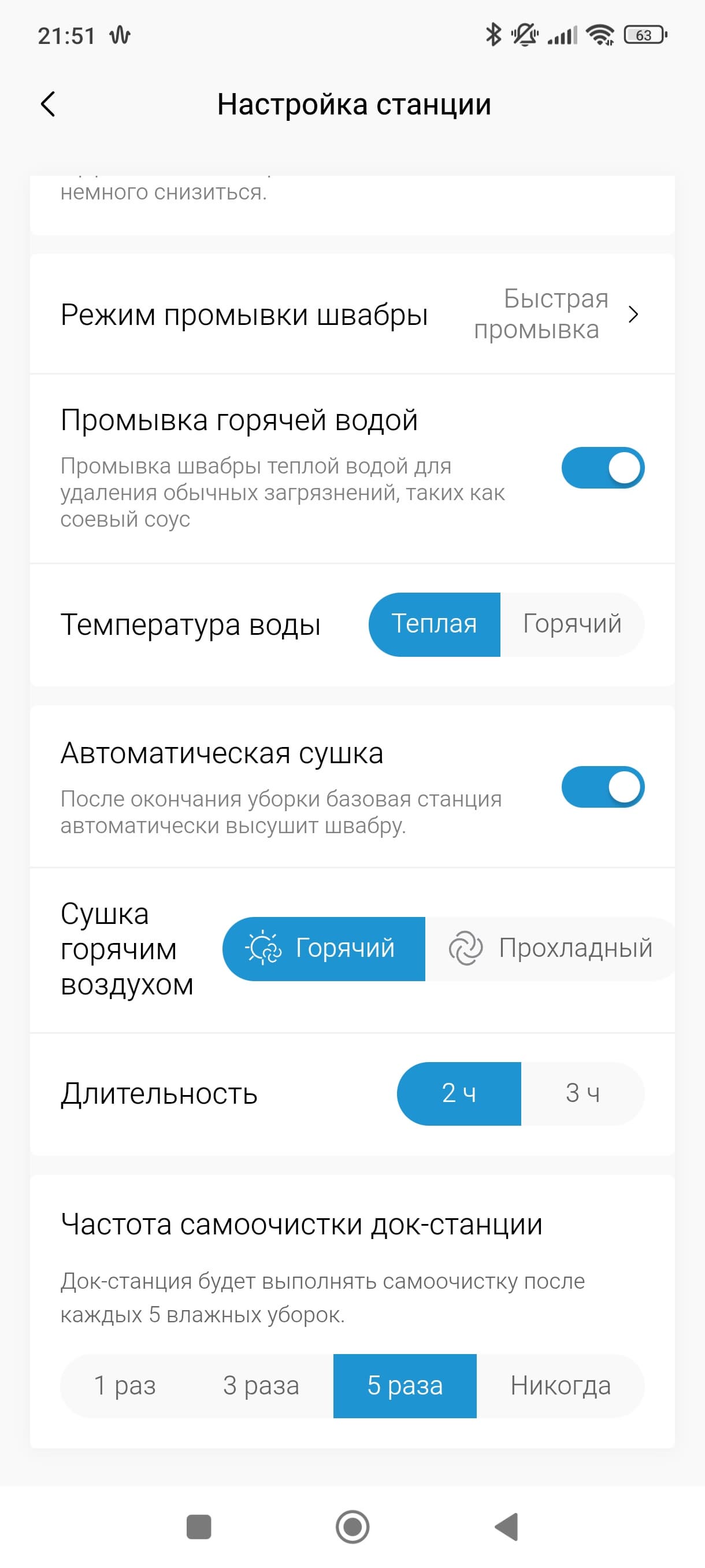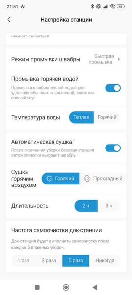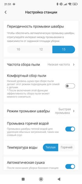 Что касается базы, то для нее можно указать множество различных параметров — частоту сброса пыли, режим автоматической сушки и т. п.