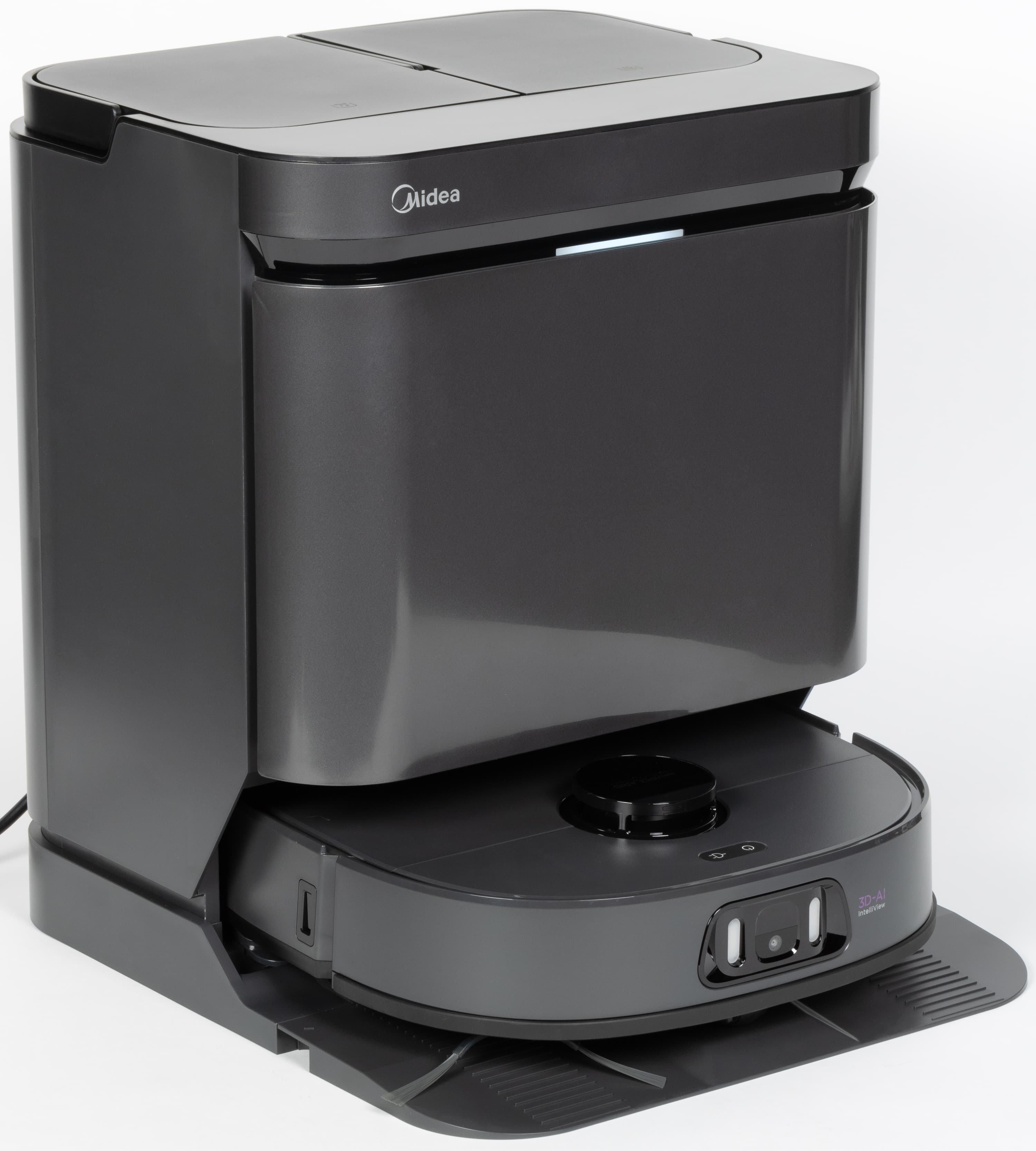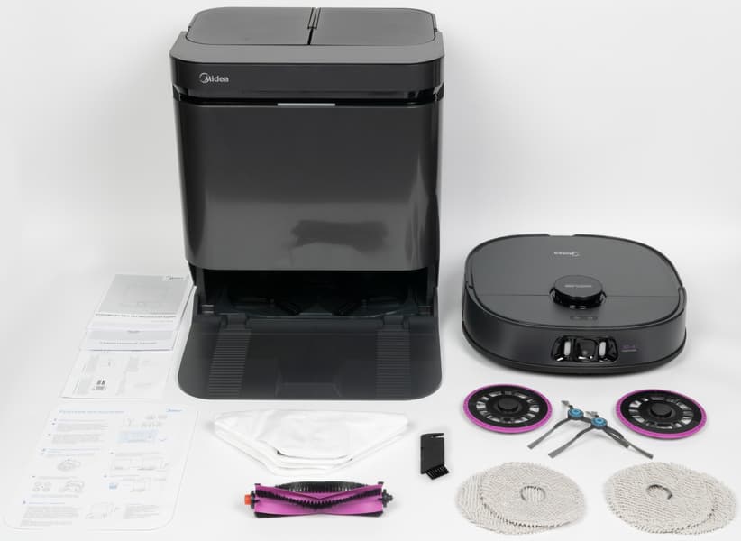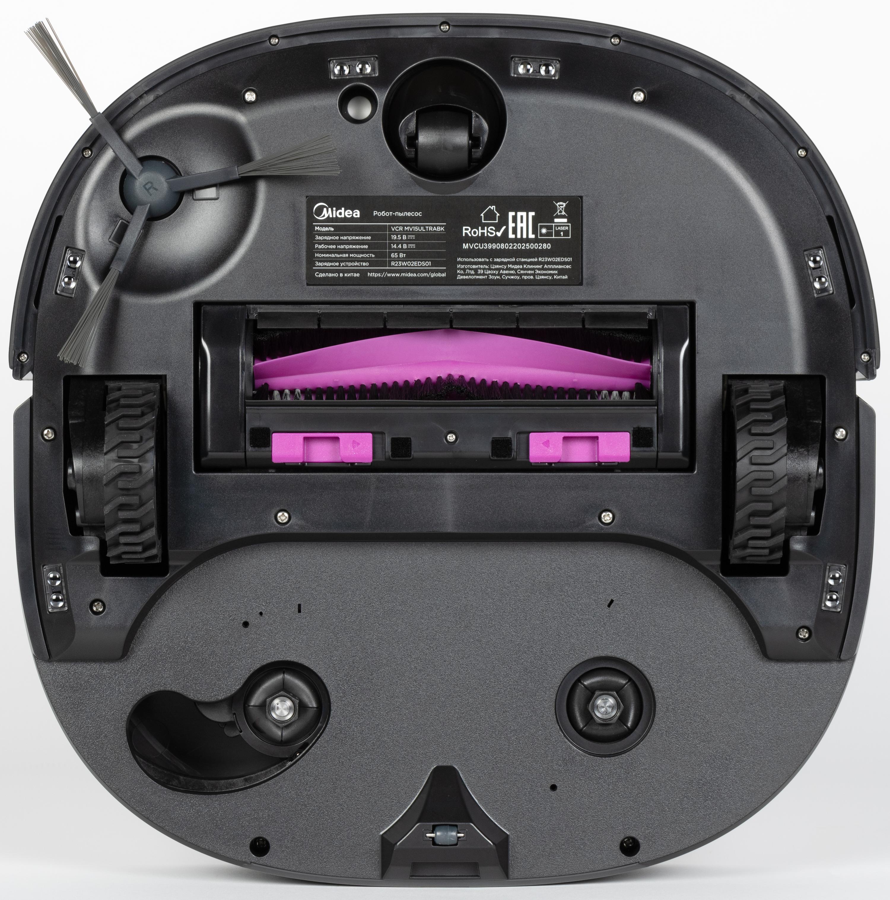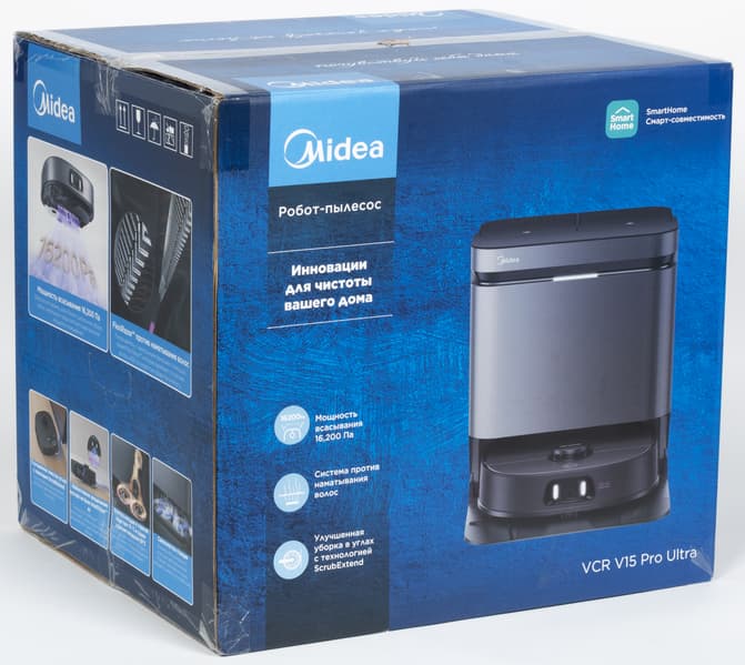 Робот-пылесос Midea VCR V15 Pro Ultra — это, по всем признакам, флагманское устройство, имеющее полный набор не только необходимых, но также и не самых обязательных функций и возможностей: робот автоматически сбросит собранный мусор в базу, заправится чистой водой, прополощет и высушит насадки для влажной уборки, а также (внимание, относительно новая функция!) срежет с центральной щетки намотавшиеся волосы и нитки. Цена устройства соответствующая (то есть далеко не самая низкая, но, в целом, адекватная).