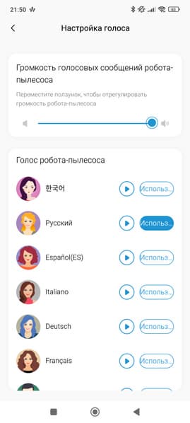 Робот оснащен голосовым помощником. Поддерживается несколько языков, включая английский и русский. Возможности загрузить свои комментарии и звуки не предусмотрено. Отметим, что услышать, что нам пытается сказать робот из соседней комнаты, получается не всегда. А значит — держим телефон под рукой и проверяем уведомления, полученные от прибора.