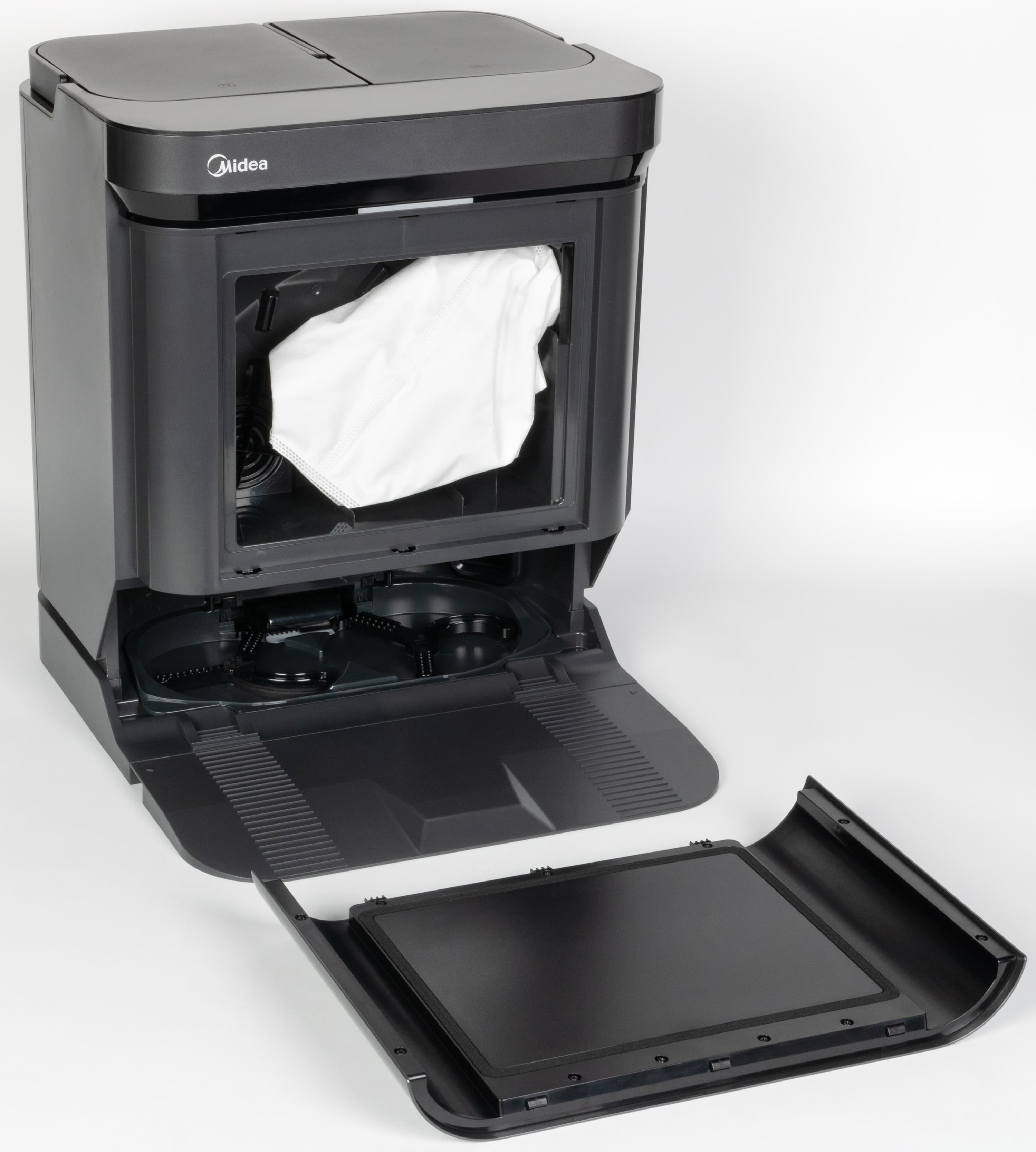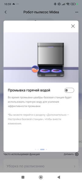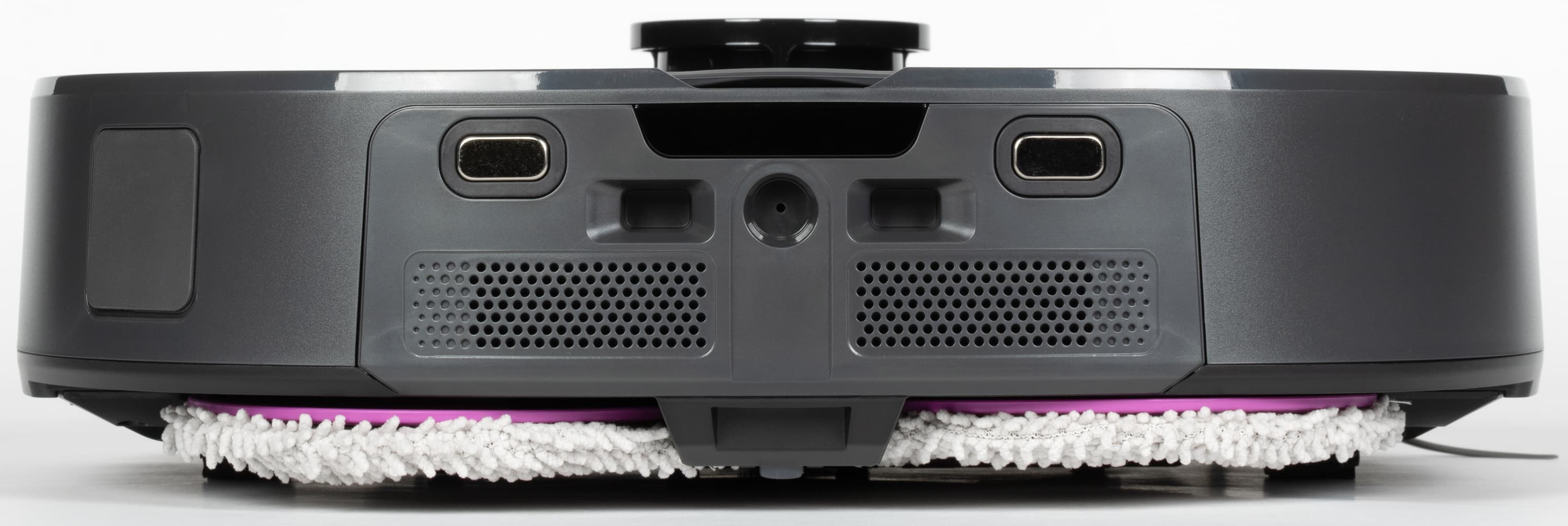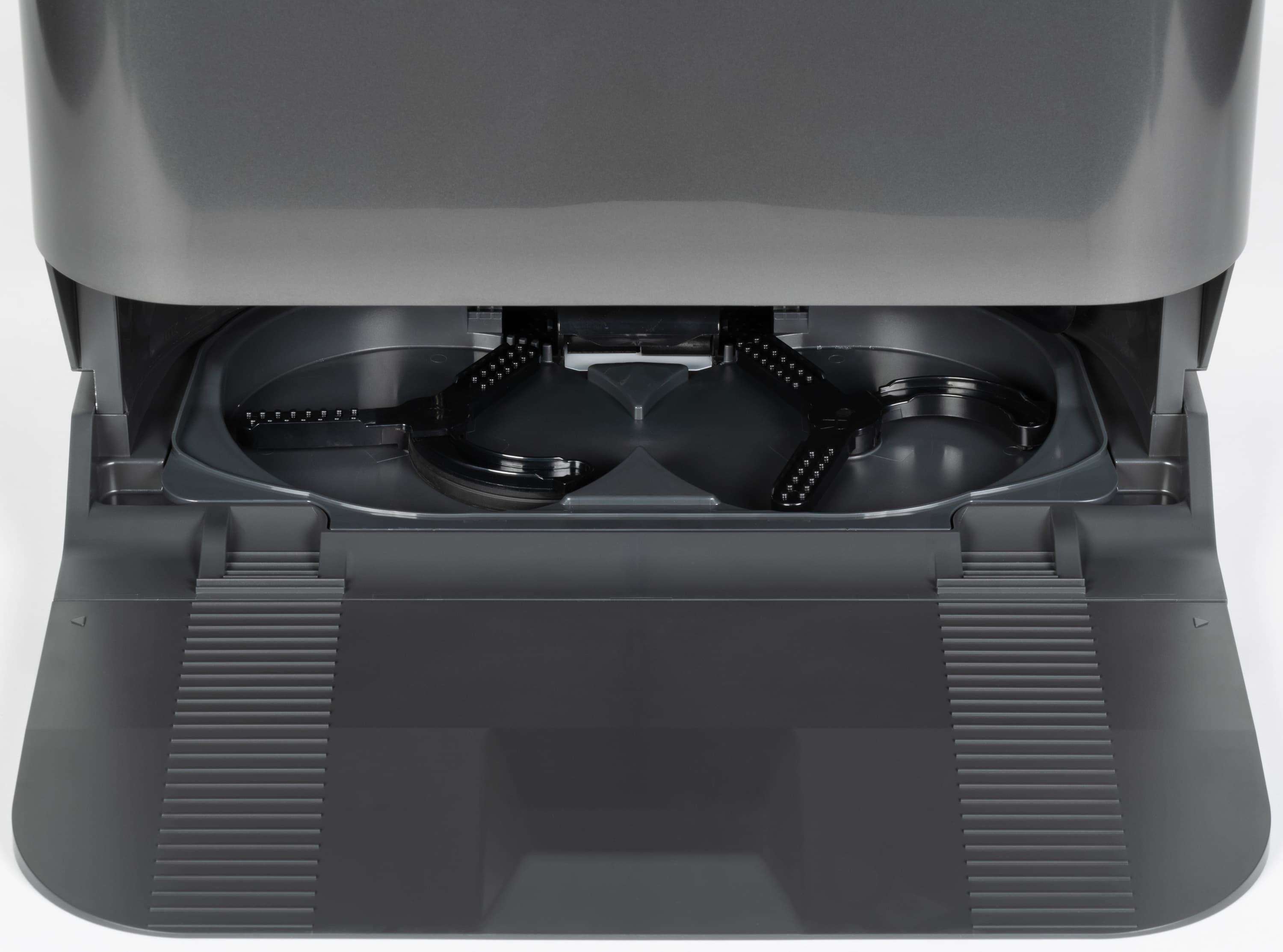 По завершении влажной уборки робот вернется на базу, почистит швабры о специальную чистилку, промоет теплой водой и высушит потоком горячего воздуха. Процесс занимает более двух часов, однако уровень шума будет небольшим, так что можно смело запускать влажную уборку перед сном (конечно, если база не стоит прямо рядом с кроватью).