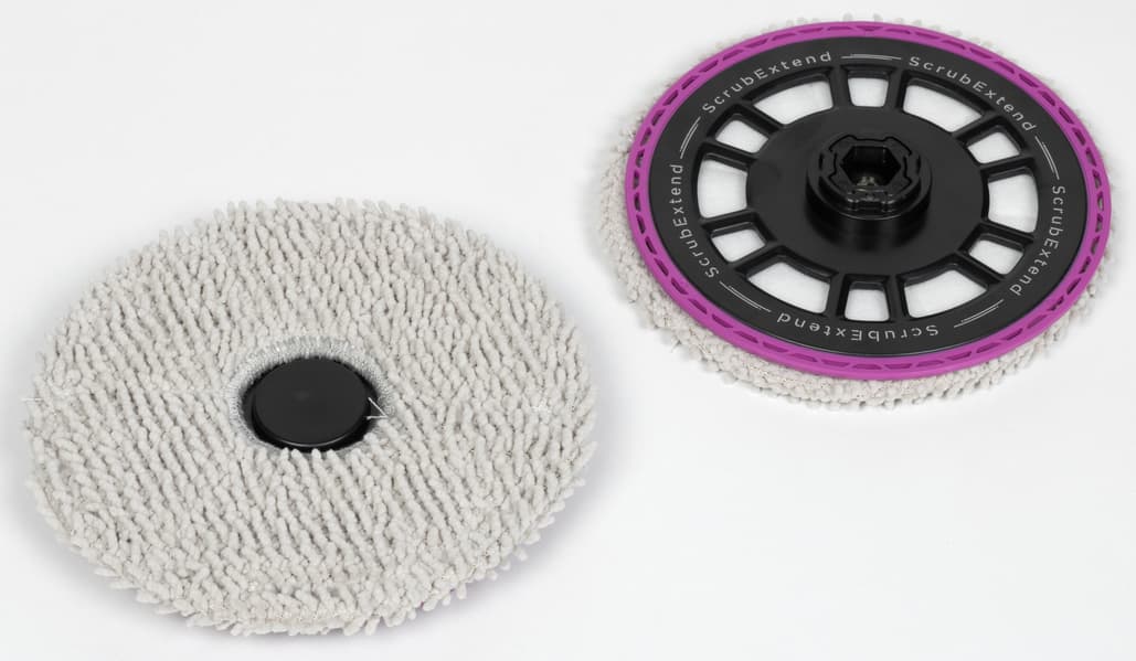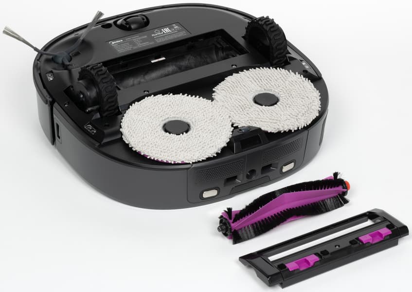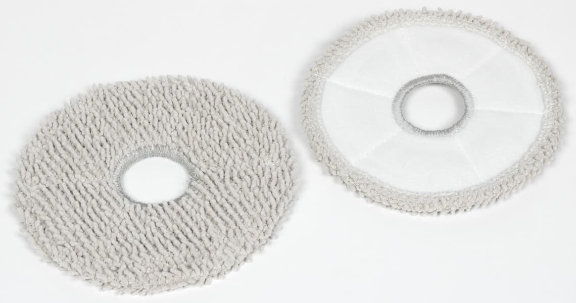 Для влажной уборки к днищу пылесоса прикрепляются две «минишвабры» состоящих из пластиковой основы и салфетки из белой ворсистой ткани, которая фиксируется с помощью липучки-велкро.