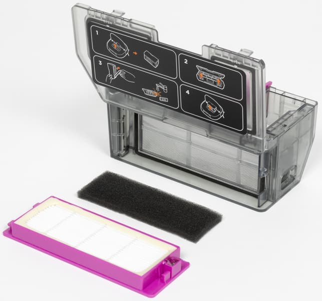 Под откидной крышкой контейнера расположен довольно крупный HEPA-фильтр...