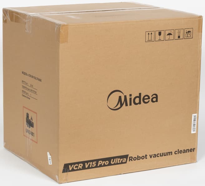 Midea VCR V15 Pro Ultra — стильный и современный прибор, заметно отличающийся от многих своих собратьев. Первое, что бросается нам в глаза — форма устройства. Перед нами не классический «блин». Форма робота — прямоугольная. Углы, естественно, скруглены.