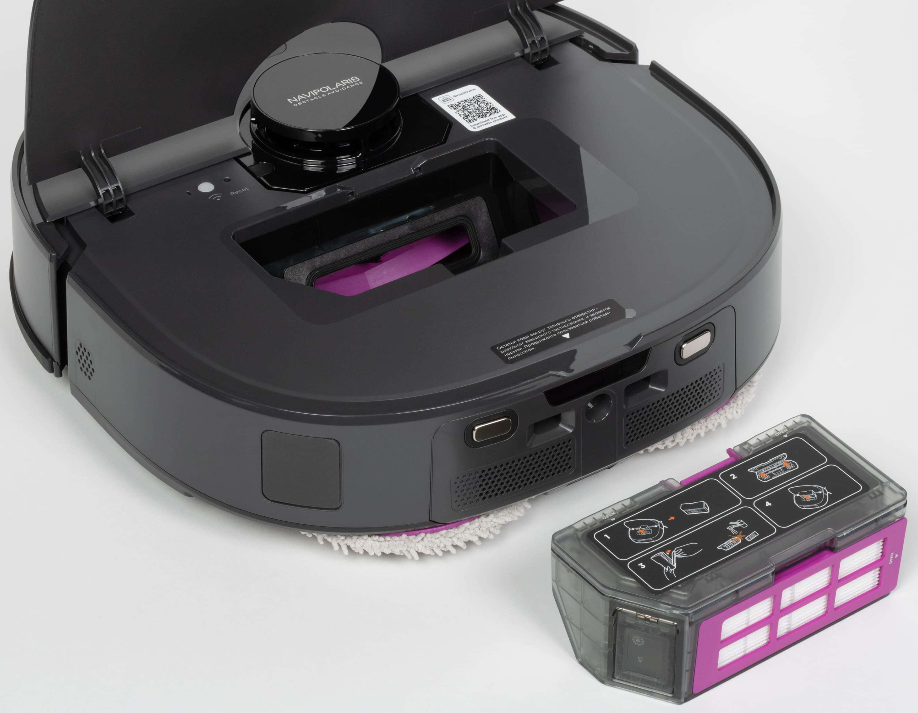 Таким образом, ключевые достоинства прячутся в цифрах или в прошивке. Мы отметим увеличенную мощность всасывания, камеру с интеллектуальным распознаванием препятствий и (новинка!) систему автоматической очистки роликовой щетки.