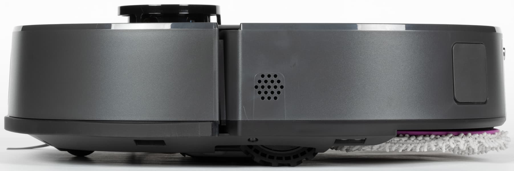 По бокам расположены лазерный датчик стены, позволяющий роботу перемещаться максимально близко к стене, и решетка динамика соответственно.