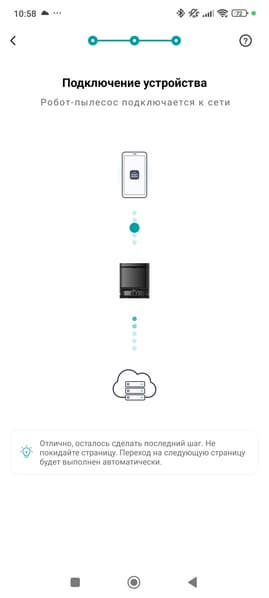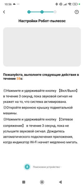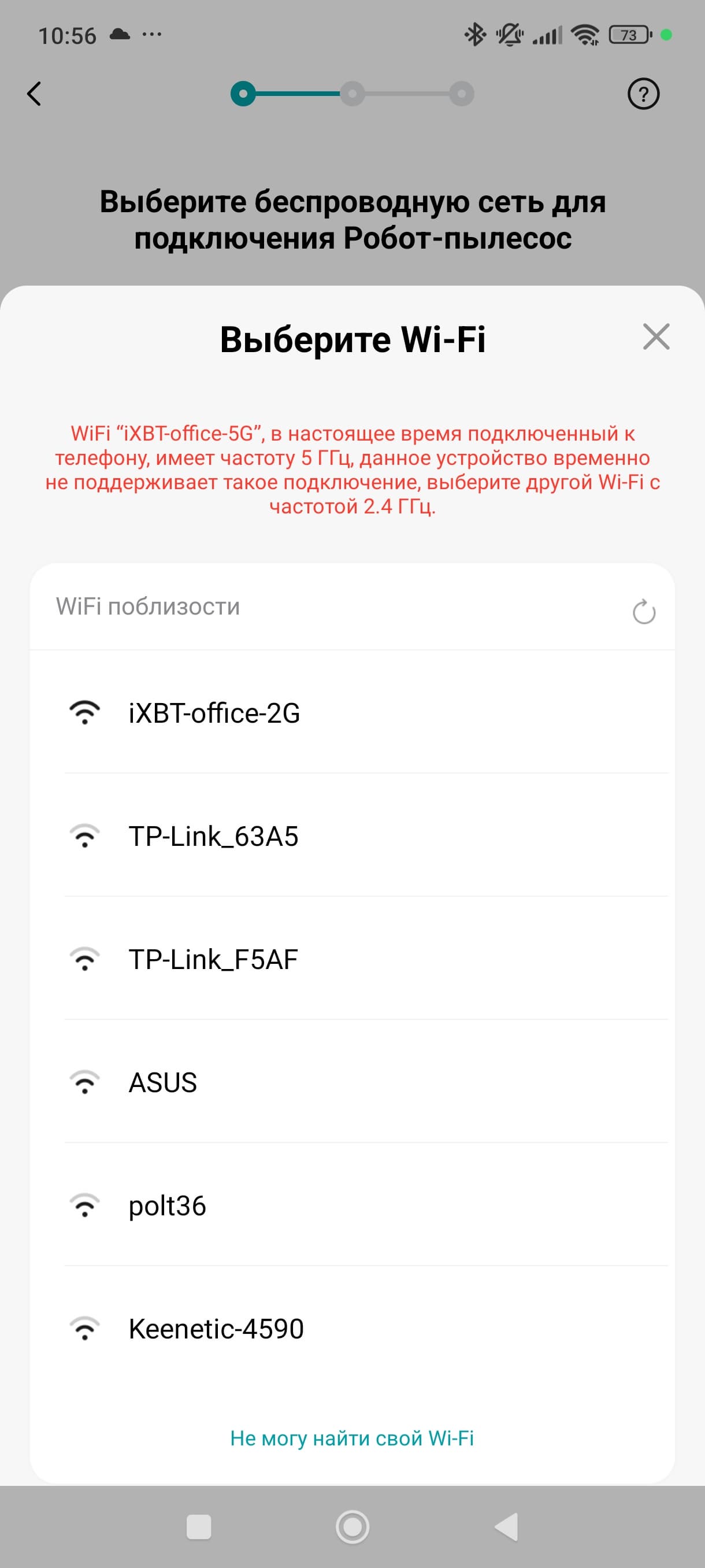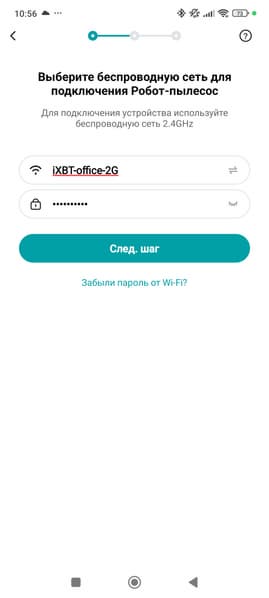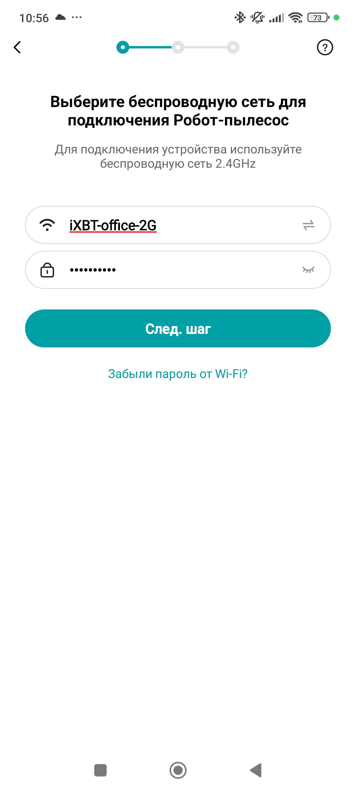 Синхронизация приложения с роботом прошла без каких-либо проблем. Все, что от нас потребовалось — это расположить смартфон рядом с прибором, включить режим сопряжения и указать данные местной Wi-Fi-сети.