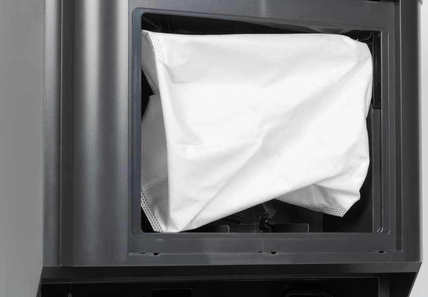Место крепления рамки оборудовано механическим датчиком: без правильно установленного мешка самоочистка не запустится.