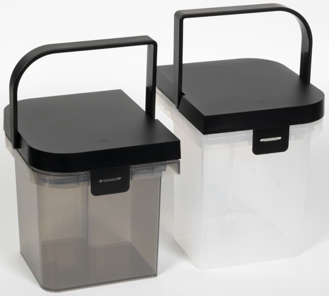 Для удобства переноски у обоих контейнеров имеется ручка, а также датчик-поплавок, с помощью которого определяется уровень воды.