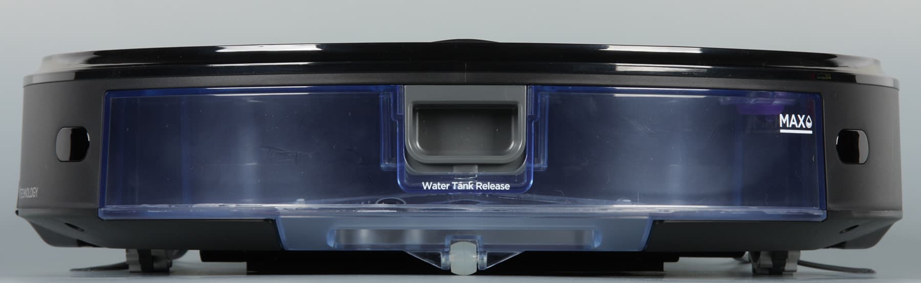 На днище расположены две контактные площадки, передний опорный поворотный ролик, боковые щеточки, крышка батарейного отсека, отсек основной щетки, два ведущих колеса, панель с четырьмя отверстиями подачи воды. Ближе к краю сразу за бампером расположены три ИК-датчика перепада высоты, благодаря которым робот-пылесос может избежать падения со ступенек.