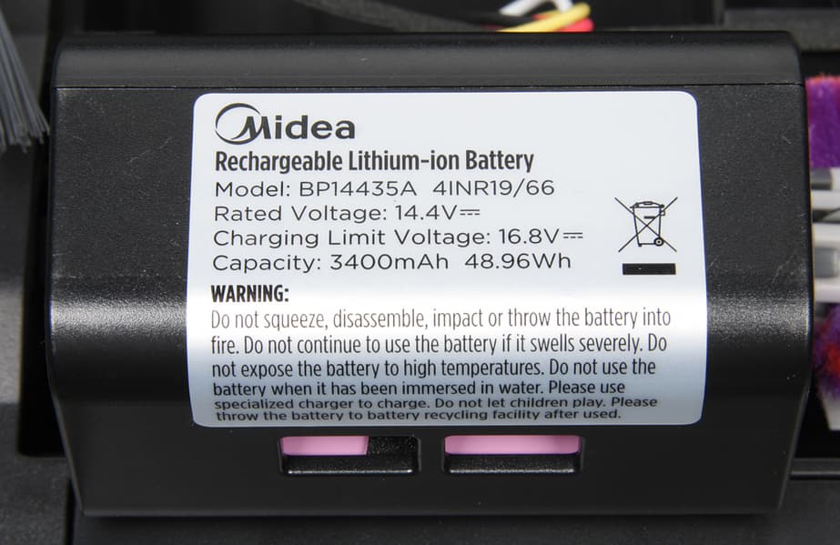 В данном роботе установлена литий-ионная аккумуляторная батарея. Батарейный блок, по всей видимости, составлен из четырех цилиндрических элементов популярного типоразмера 18650.
