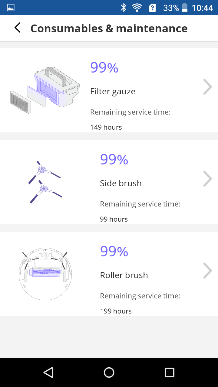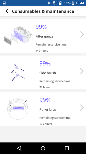 В приложении выбирать режимы уборки, регулировать мощность вентилятора и скорость подачи воды, задавать расписание уборки, отслеживать ресурс щеток и фильтра и статистику уборок, настраивать голосовое оповещение. Также приложение можно использовать в качестве пульта ДУ для управления движением робота.
