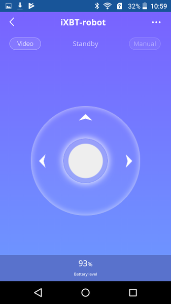 Фирменное приложение, устанавливаемое на смартфоны с Android и iOS (планшеты, по всей видимости, не поддерживаются вовсе) на борту, существенно расширяет функциональность робота. Запустив приложение первый раз, нужно установить связь с роботом, который должен быть в радиусе действия Wi-Fi-сети (поддерживается только 2,4 ГГц). Для установки связи с роботом используется глобальный облачный сервис (необходима регистрация), поэтому доступ к роботу можно получить из любого места, где есть Сеть. Впрочем, после обнаружения подключенного к Сети робота и установки связи с ним доступ к Сети уже не требуется.