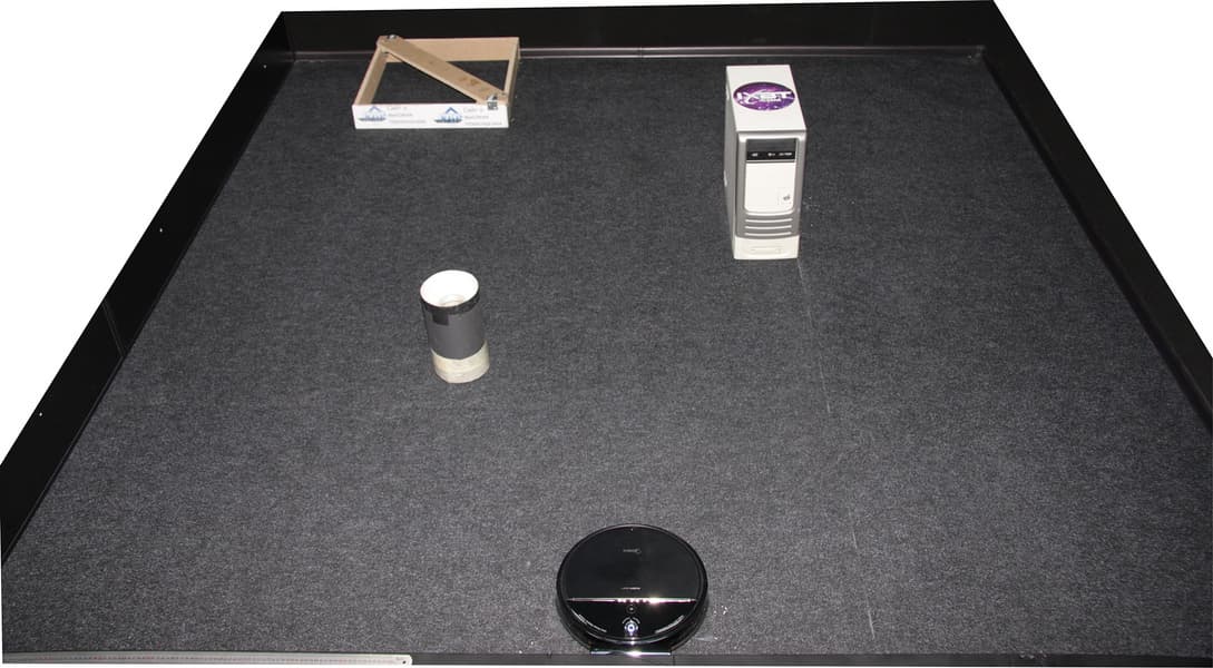 Робот с готовностью забирается в узкий загончик (на 50 мм шире ширины робота) и тщательно там убирает. С базой робот обращается очень аккуратно, не толкает и не сдвигает, и объезжает ее близко, оставляя около нее совсем немного мусора. Паркуется робот медленно и аккуратно, и в наших тестах всегда с первого раза. Убирая змейкой, робот может двигаться вдоль вертикальных и хорошо отражающих ИК-лучи стен, практически впритык к ним, однако препятствием робот считает только то, во что упирается бампером вплоть до срабатывания механических датчиков.