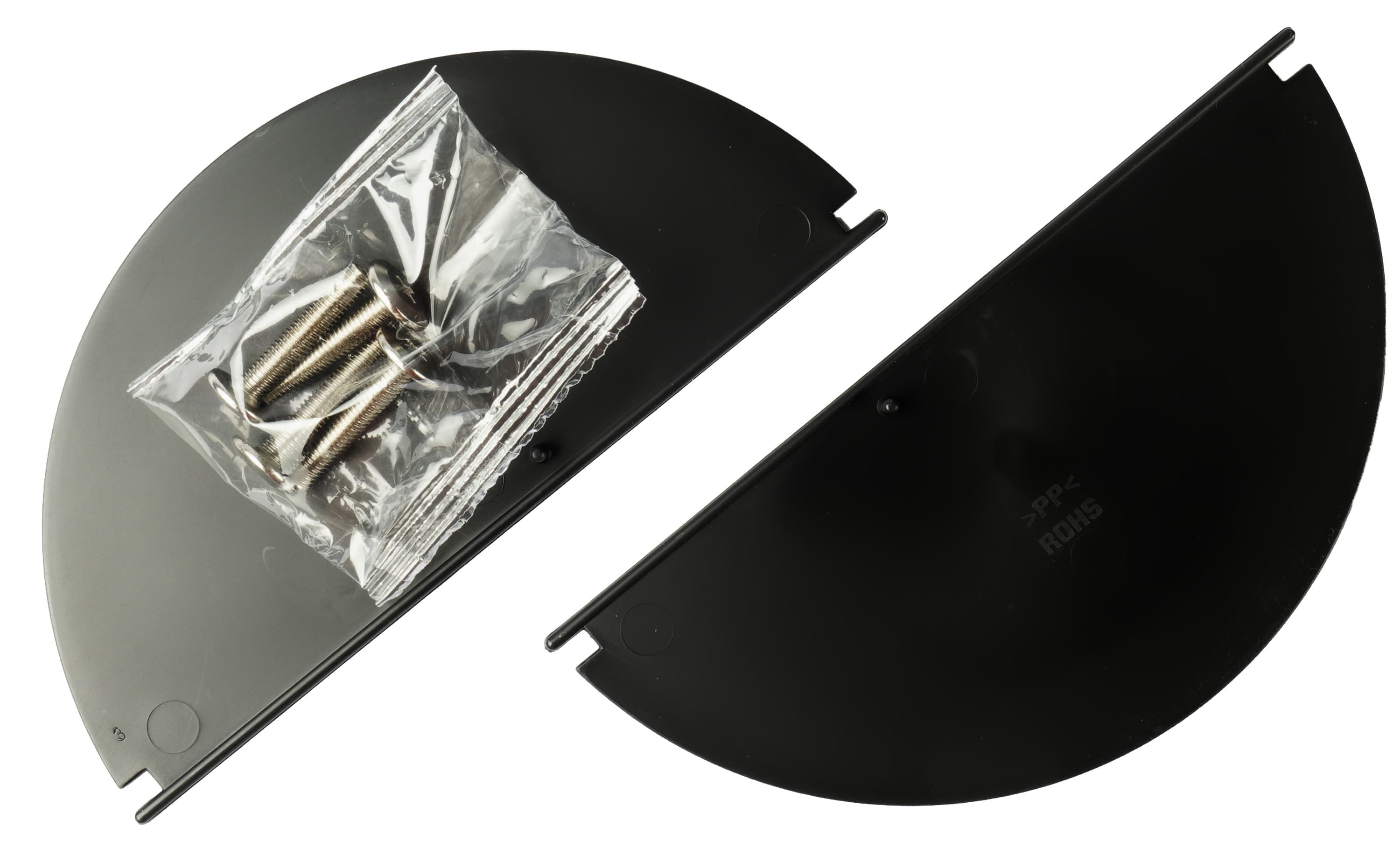Для монтажа в кухонный гарнитур предназначены четыре шайбы, запрессованные в верхнюю панель. В них вкручиваются винты, входящие в комплект устройства.