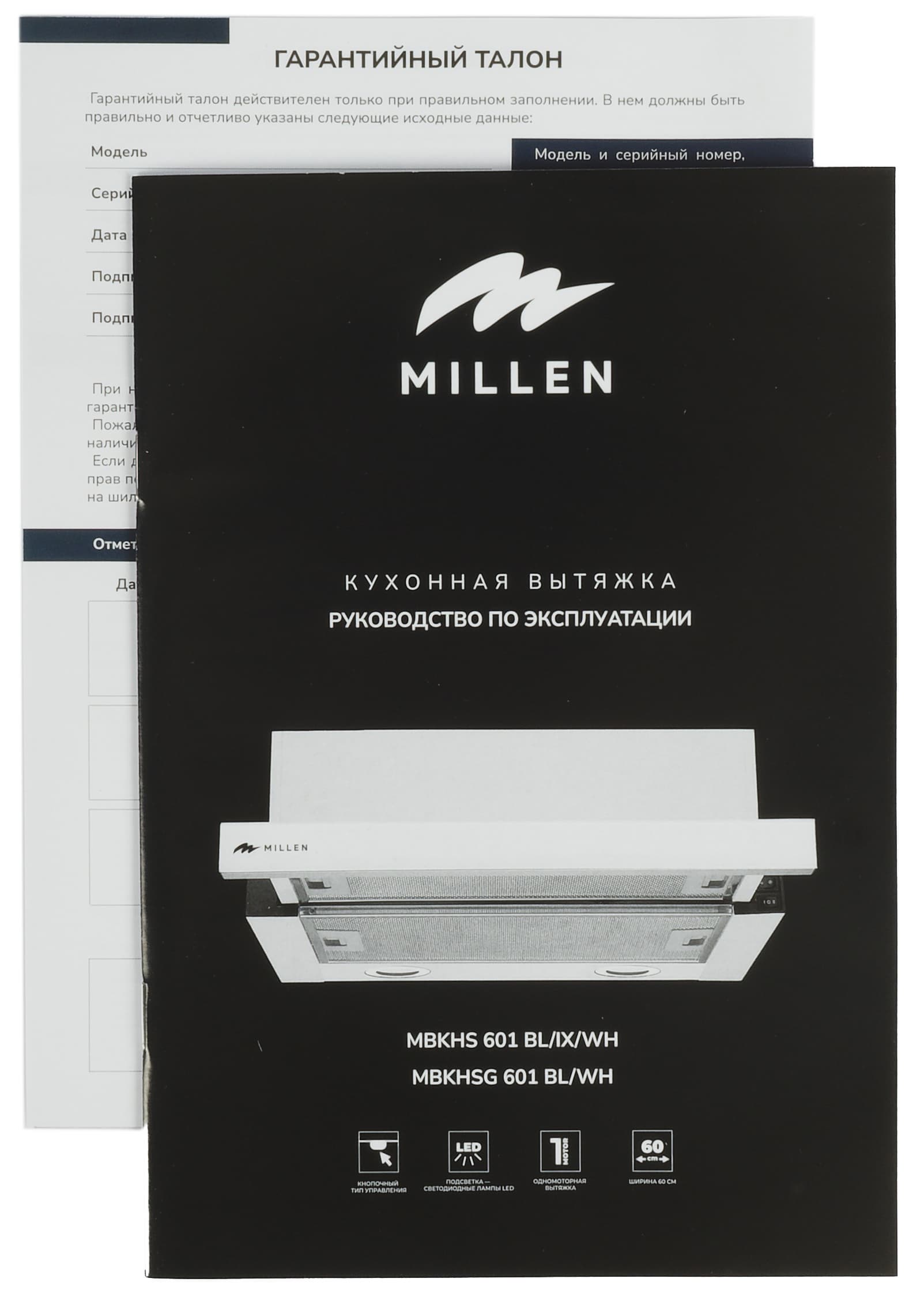Инструкция к вытяжке представляет собой 24-страничную брошюру формата А5. Она составлена сразу для двух моделей вытяжек Millen, отличия между которыми подробно разъясняются.