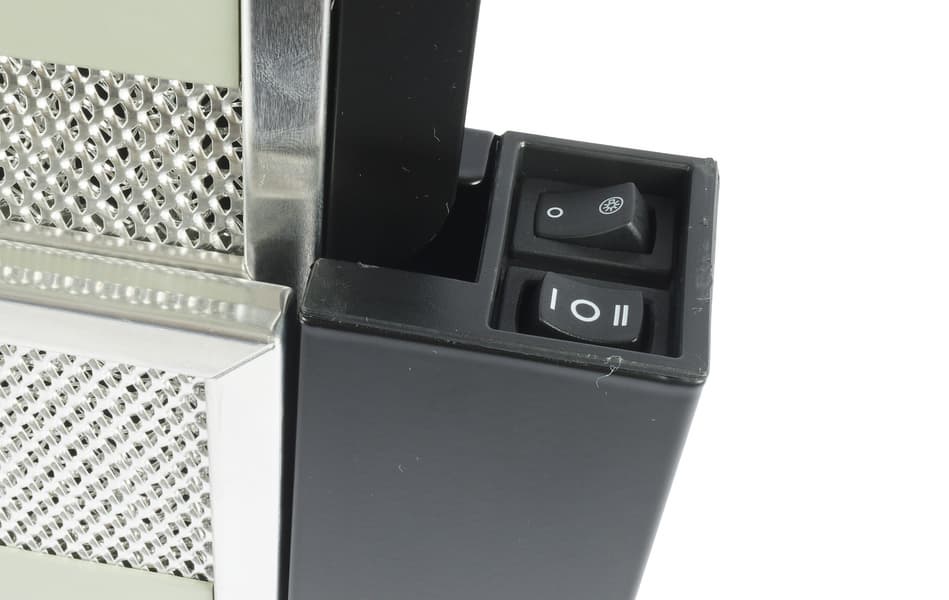 Панель управления размещена на торце устройства, справа от выдвижной части. Она состоит из двух клавишных переключателей: двухпозиционного, управляющего подсветкой, и трехпозиционного, предназначенного для включения двух скоростей вентиляторов.
