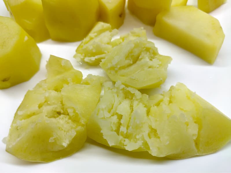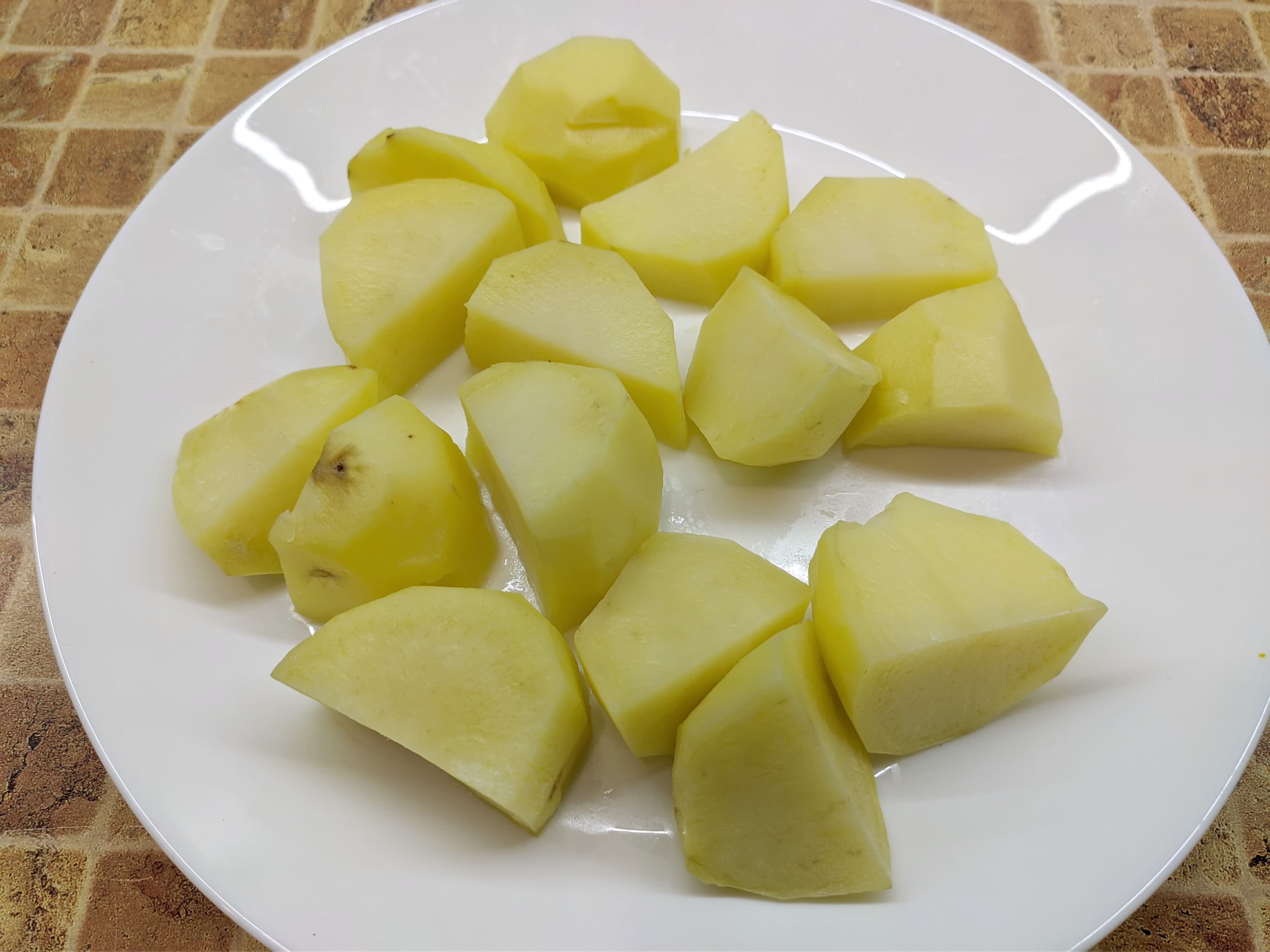 В целом картофель стоит признать почти готовым. Он оказался лишь немного недоварен, однако имел характерную (для приготовления с помощью микроволн) жестковатую шкурку.