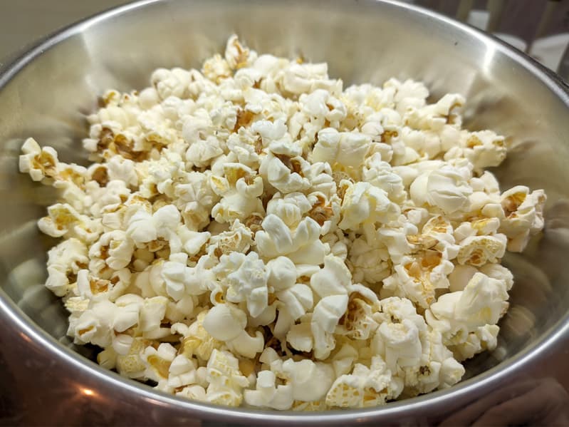 Вскрыв пакет, мы обнаружили практически идеально приготовленный попкорн. Целых (не лопнувших) зерен в пакете было крайне мало, сам попкорн оказался приготовлен как надо — то есть без подгоревших участков (некоторые микроволновки начинают «жарить» уже раскрывшиеся зерна, пока другие еще не успели раскрыться).