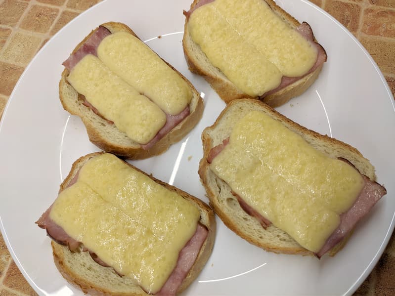 По истечении 10 минут мы получили горячие бутерброды-гриль. Сыр оплавился, однако на хлебе практически не было поджаренных участков.
