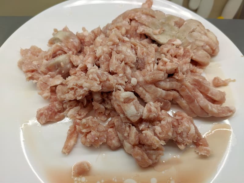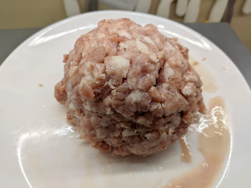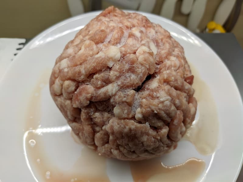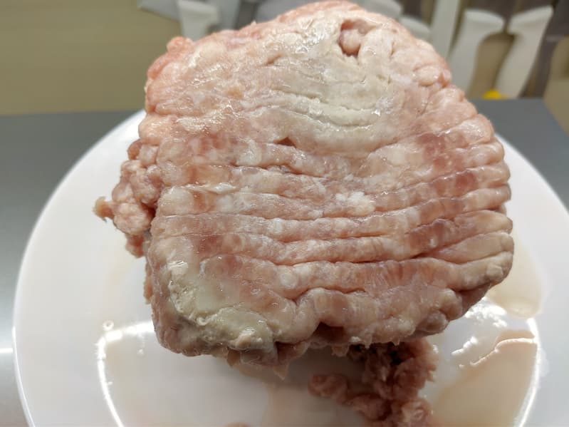 А вот разморозившаяся часть фарша нас в целом порадовала. За исключением участков, контактирующих с тарелкой, фарш оказался разморожен аккуратно и деликатно.