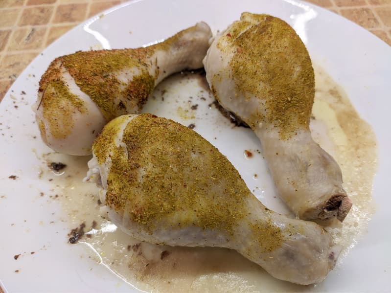 Мы взяли еще три куриных голени и решили приготовить их в течение того же времени (6,5 минут) на комбинированном режиме (55% микроволн, 45% гриля).