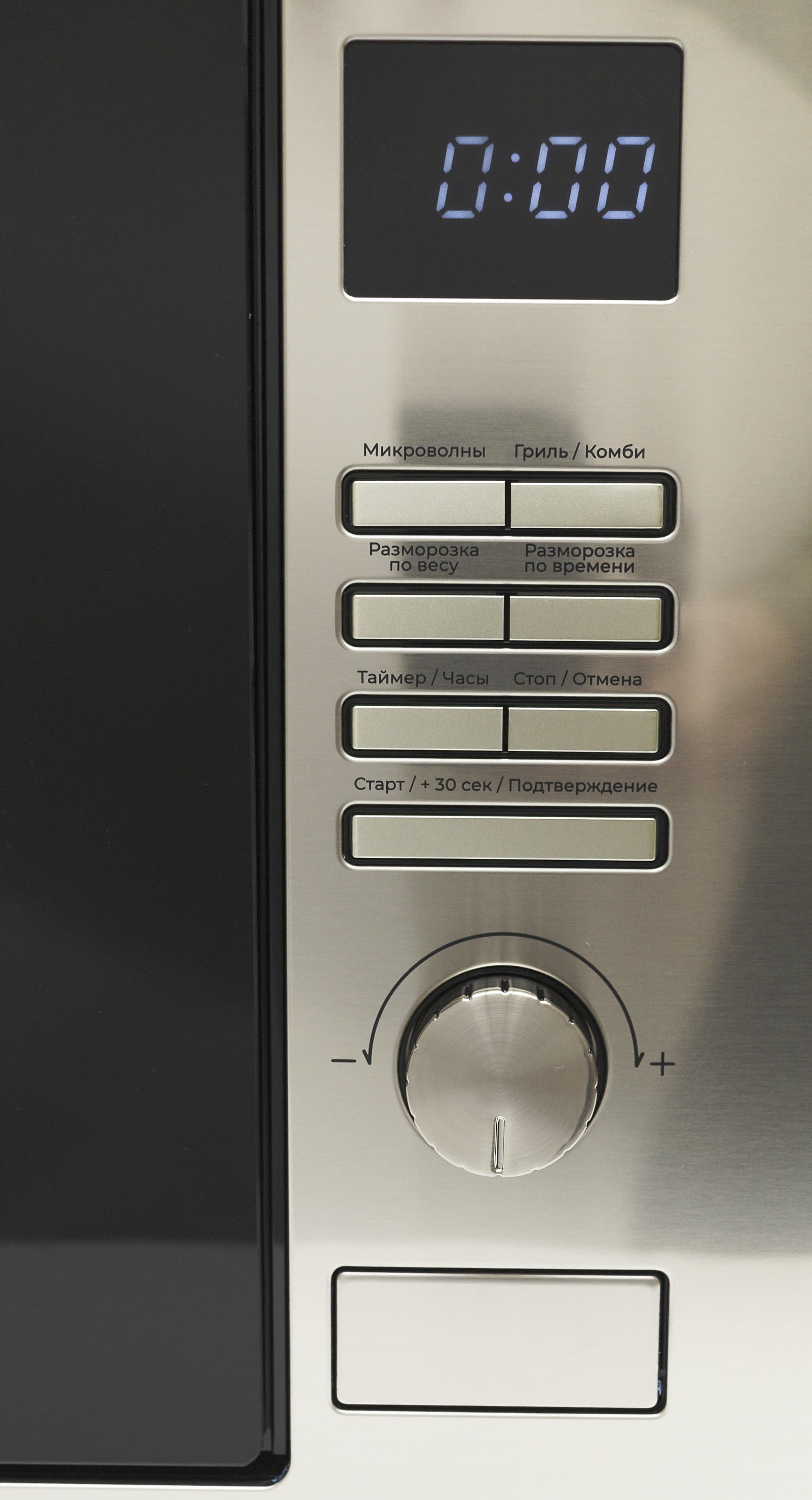 Отметим, что наша микроволновка также допускает настройку приготовления в 2 этапа. Например, размораживание, а затем — обработка с помощью микроволн.