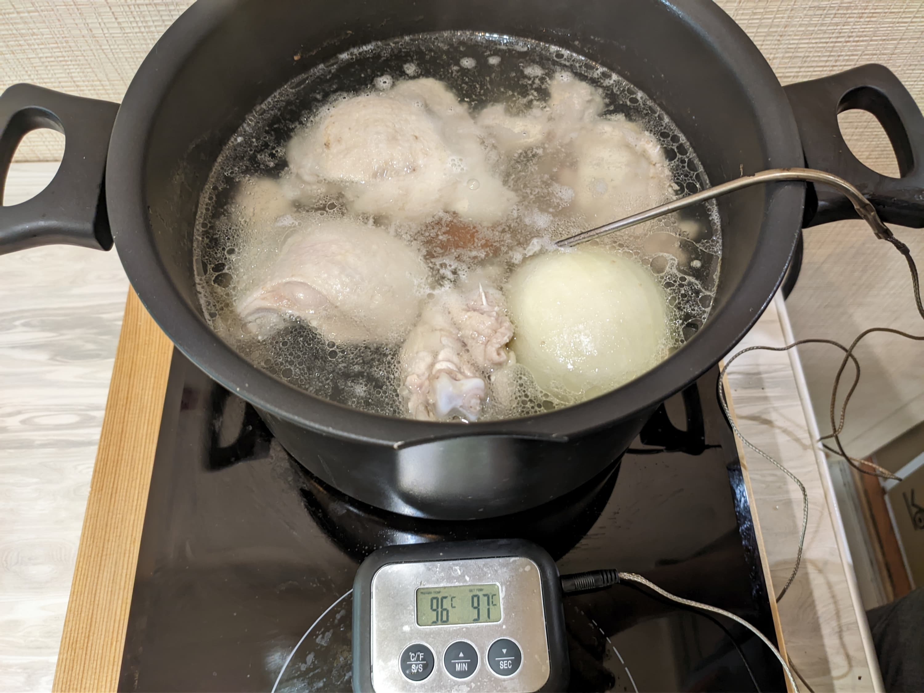 Тест с куриным (либо любым другим) бульоном мы проводим с целью выяснить, удастся ли нам добиться равномерной температуры в районе 95 градусов. Именно при таком режиме (чуть ниже точки кипения) мы получим чистый и прозрачный бульон, а также будем избавлены от необходимости постоянно снимать образующуюся на поверхности пену.