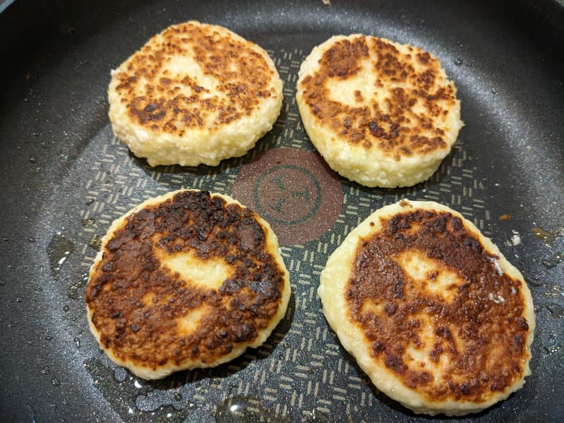 Вымесим до однородной массы, сформируем сырники и начнем их жарить на среднем температурном режиме.