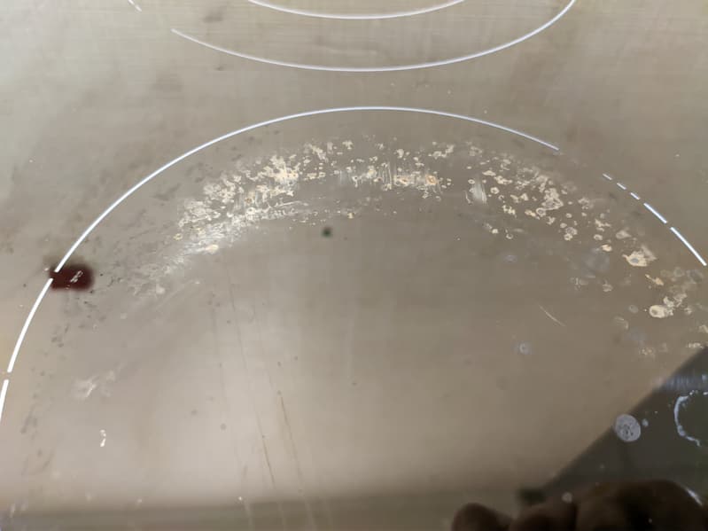 В ходе тестов мы обратили внимание, что наша поверхность загрязняется довольно быстро и легко. Буквально несколько капель масла со сковороды, попавшие на соседнюю горячую зону, способны создать загрязнения, заметные невооруженным глазом. При этом оттереть их обычной тканью или губкой не получится — придется использовать скребок и специальные чистящие средства. В общем, поверхность требует аккуратного обращения: в ходе эксплуатации надо следить, чтобы масло и прочие брызги по возможности не попадали на горячие части поверхности, а если это случилось — вытирать их при первой же возможности.